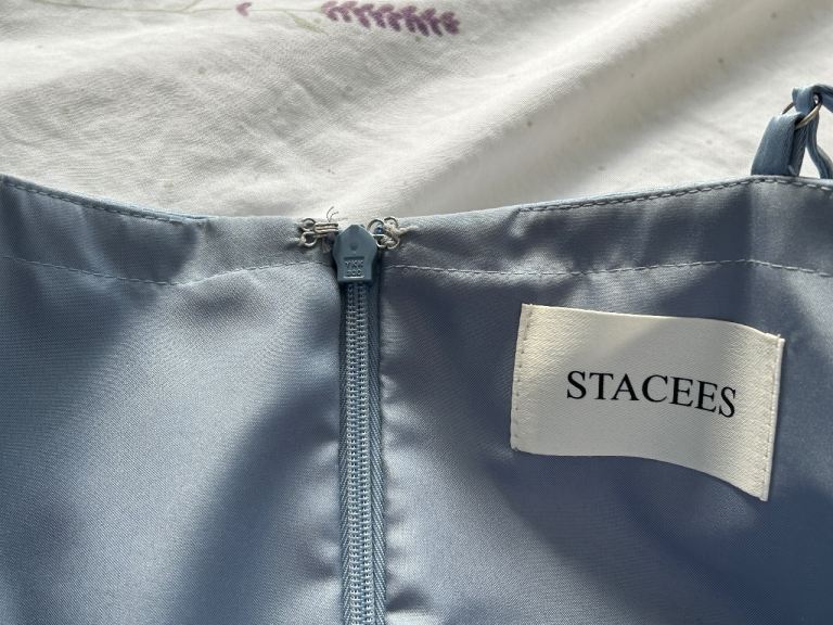 Stacees XS satin prom dress in dusty blue
