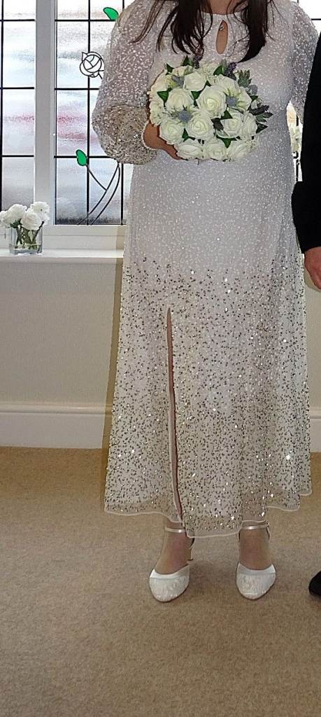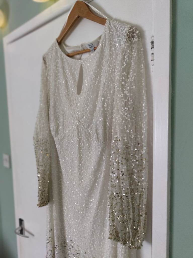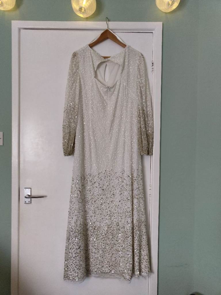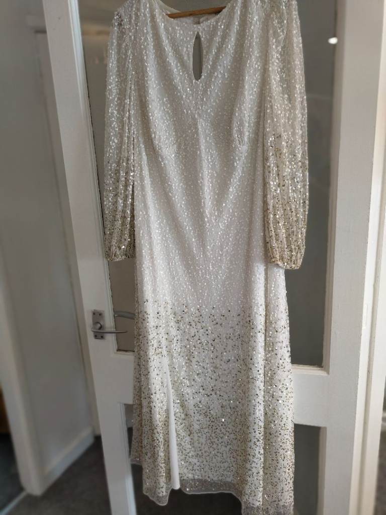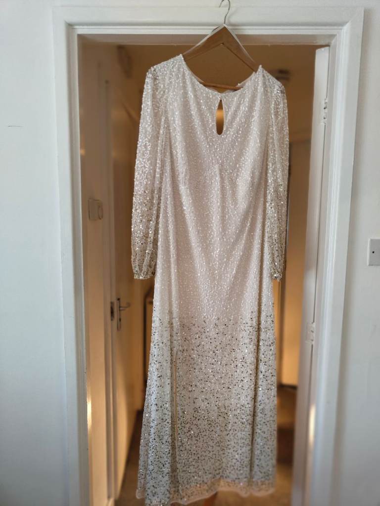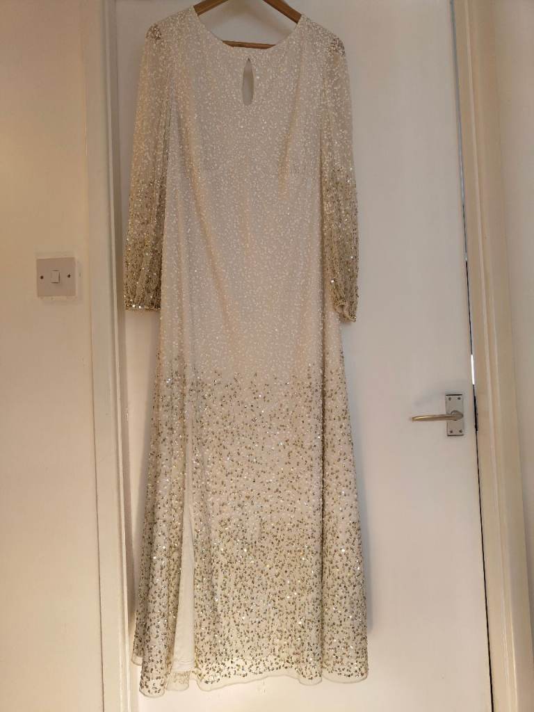 Wedding Dress, Joanna Hope Long Sleeve Sequin Dress in Ivory/Gold – UK Size 22