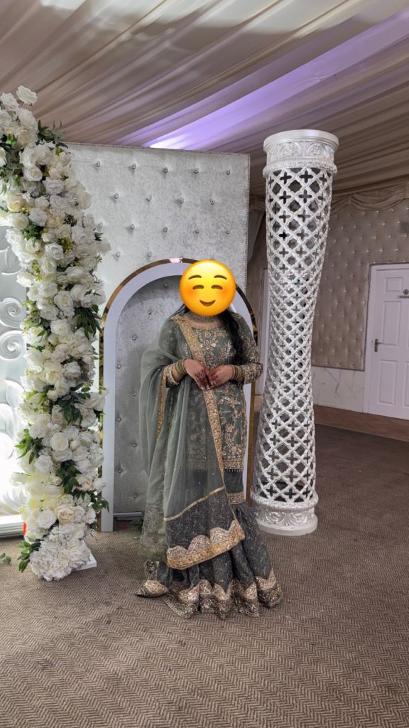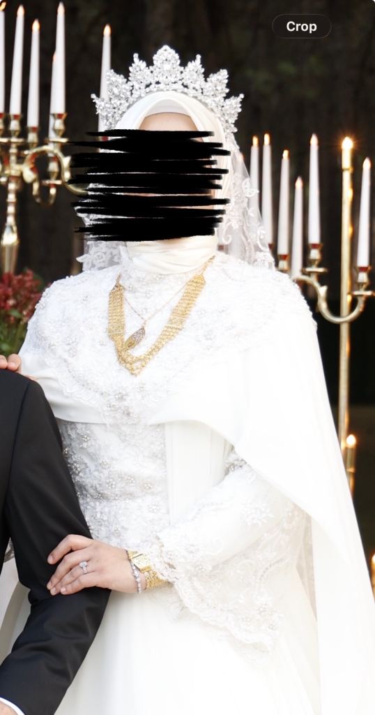 Custom-made wedding dress, suitable for sizes M–L–XL, with a lace-up back and zipper closure. Worn once for couple of hours