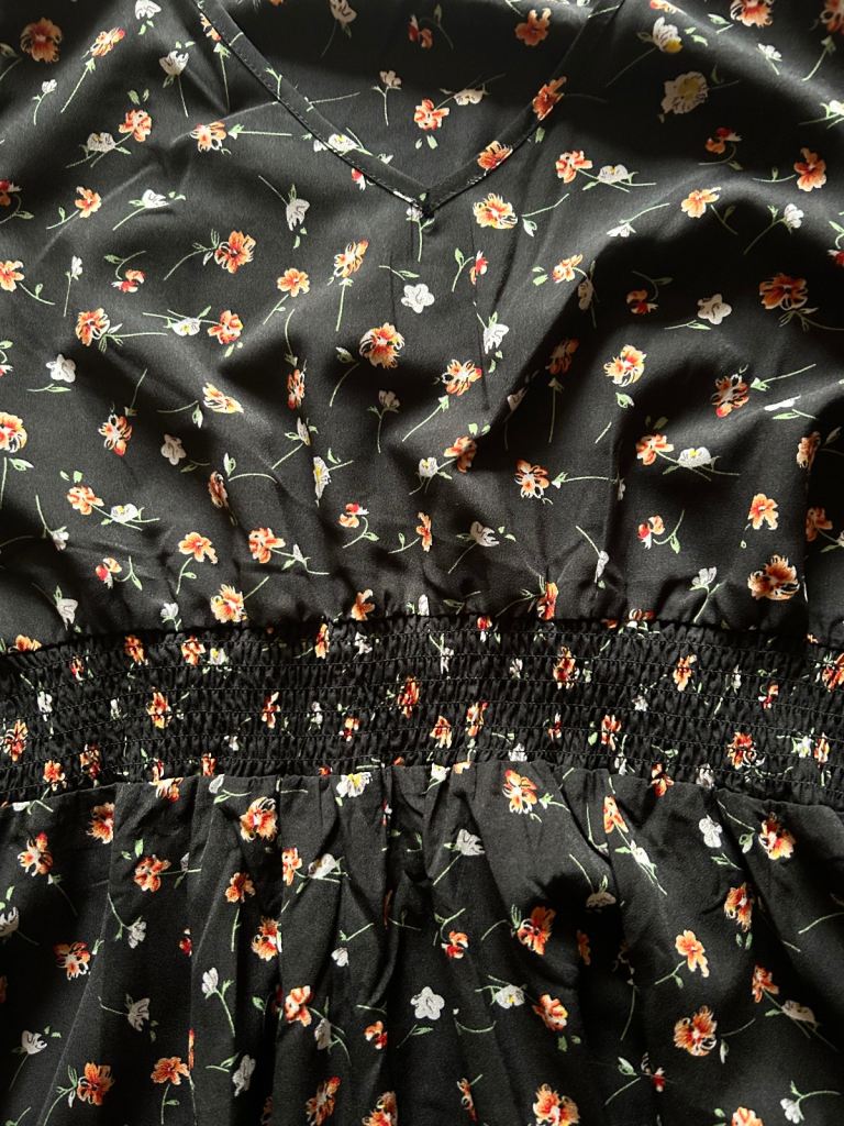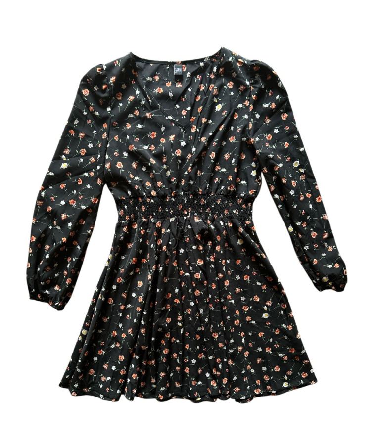 Womans Ditsy Floral Print Dress Long Sleeve V Neck Size Large 12-14