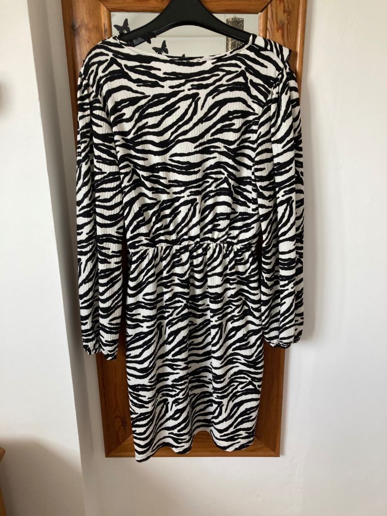 Lovely brand new with tags. black & white zebra print knee length dress. Size 10. £5 Cash on collection from BS41.