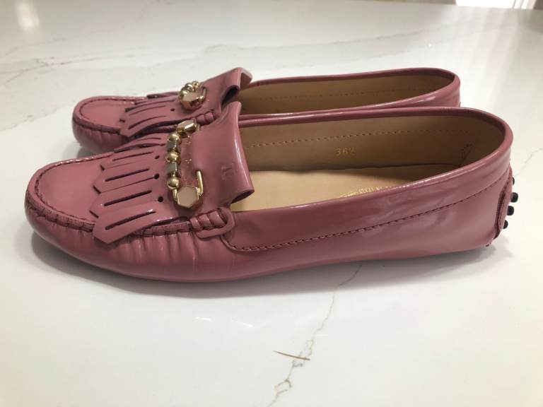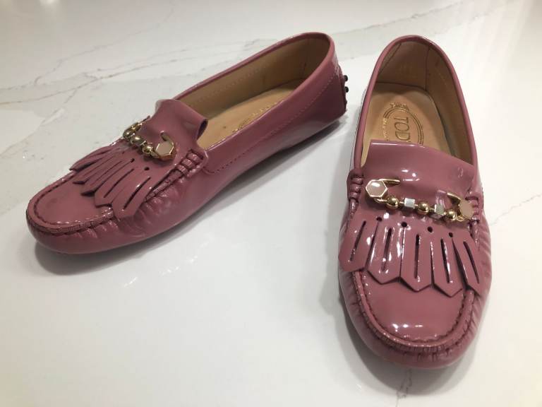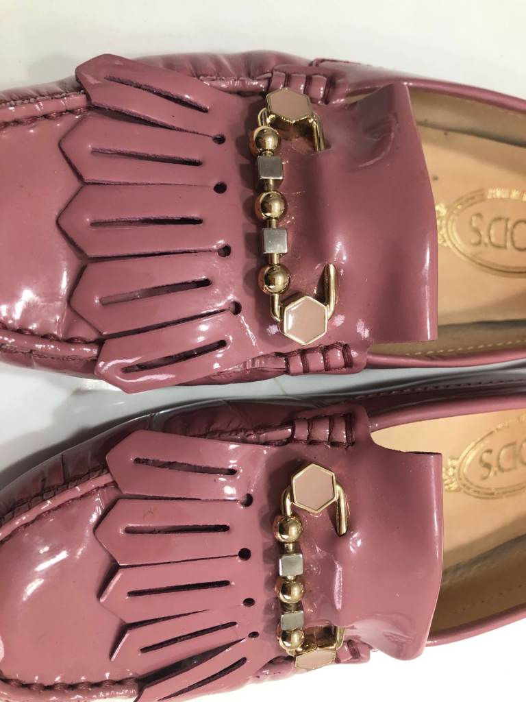 Dusky Pink Patent Leather Penny Loafers