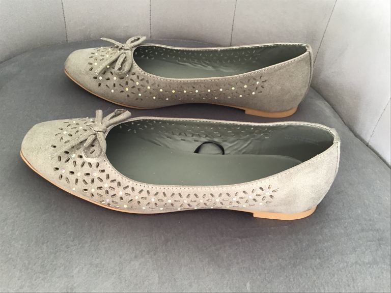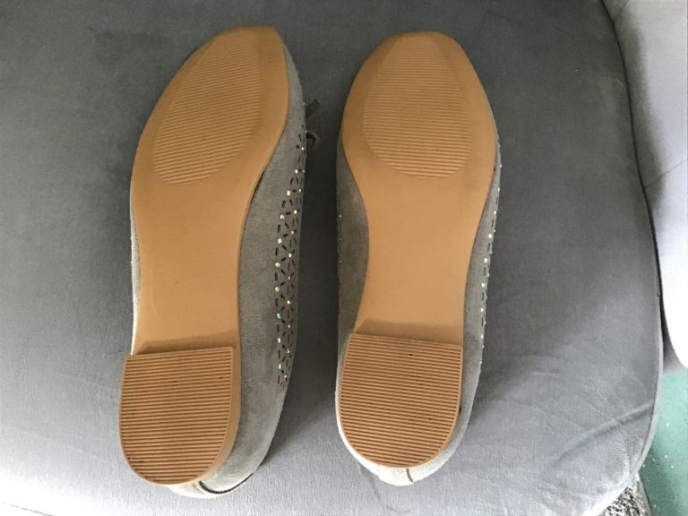 Beautiful flat shoes with bow on front and tiny sparkly stones. Size 3. Sage green. Hardly been worn, excellent condition.