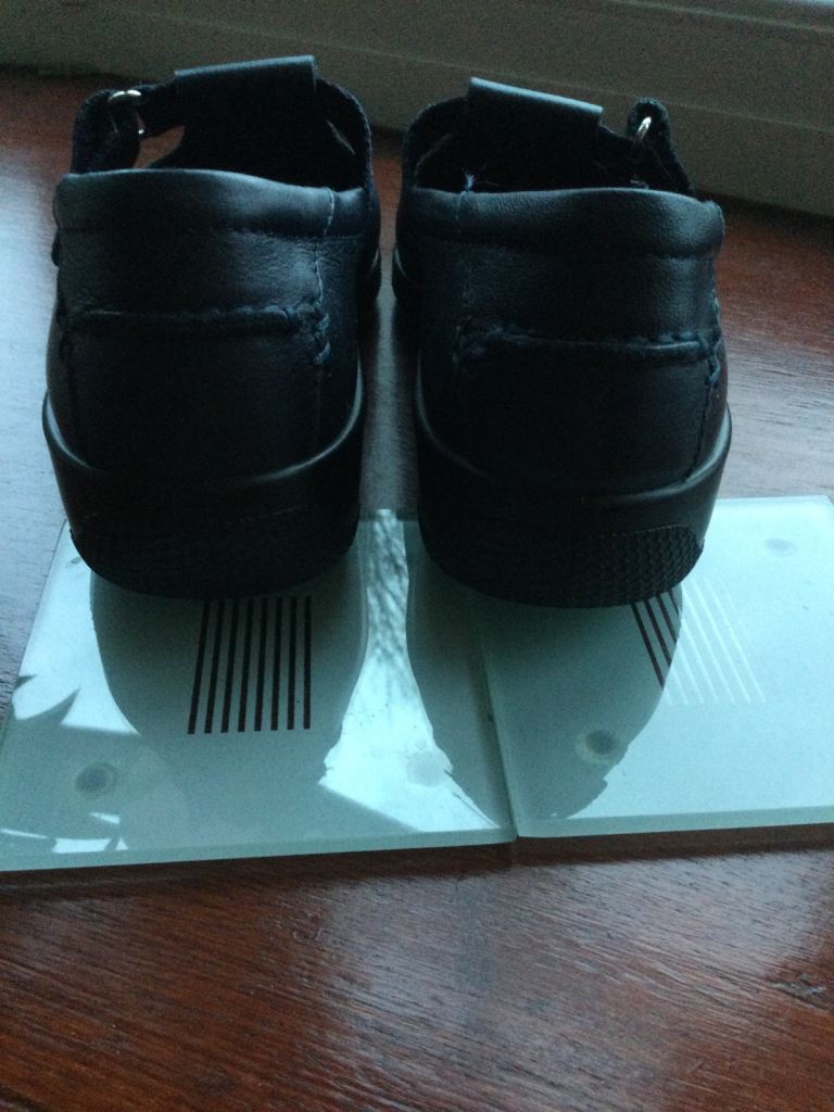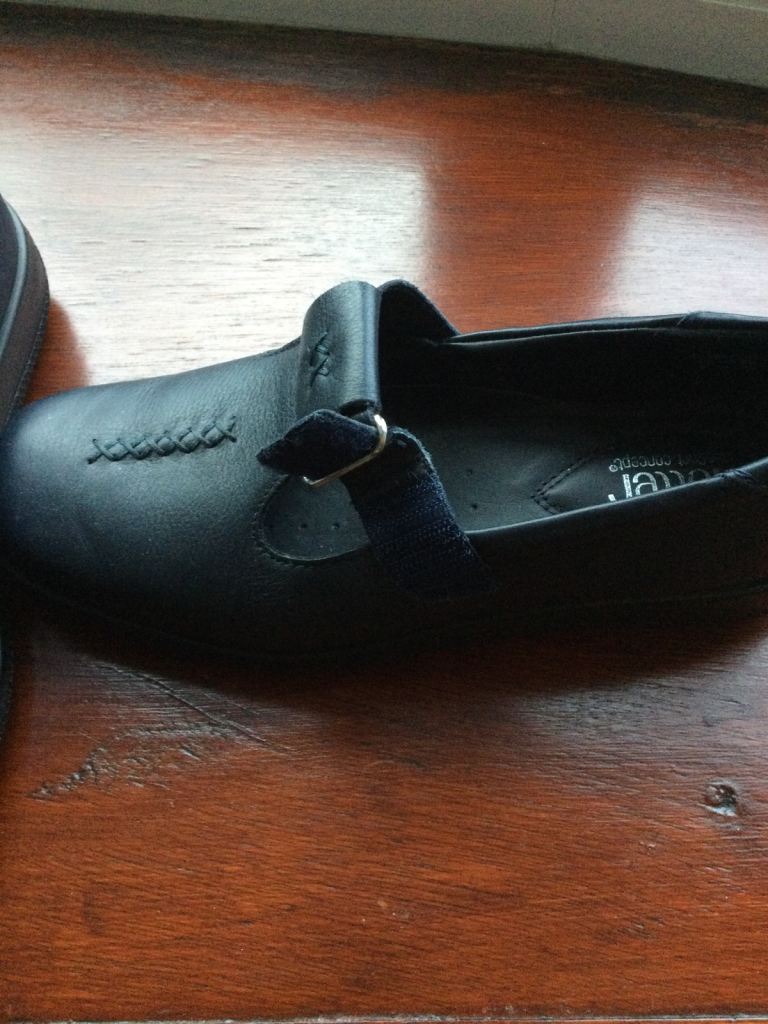 Navy Ladies Leather Hotter Slip on shoes. Size 6. Standard fit. Velcro fastening. Tried on in house only.