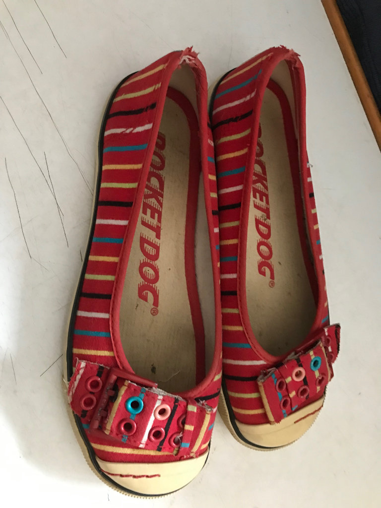 Pre-loved Rocket Dog Red Striped Flat Shoes - Size 4