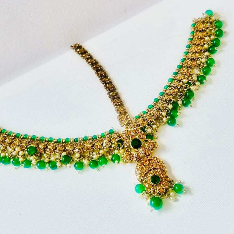 Bronze and Green Hair Maang Patti