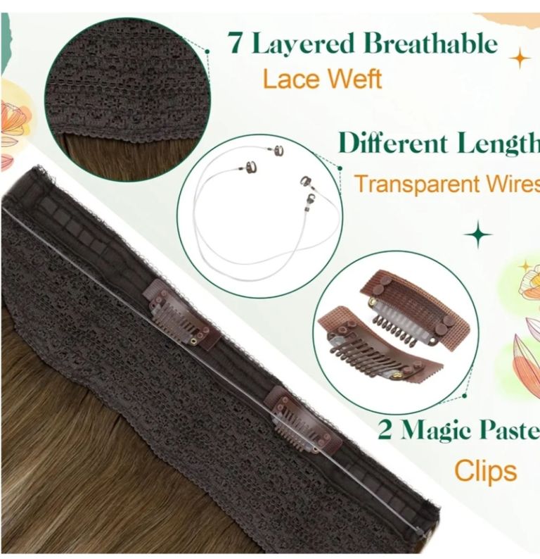 Open but never use Easyouth Wire Hair Extensions Real Human Hair Balayage Brown Wire Extensions Human Hair Ombre Brown to Blonde Secret Fish Line Extensions Real Hair 14 Inch 70g