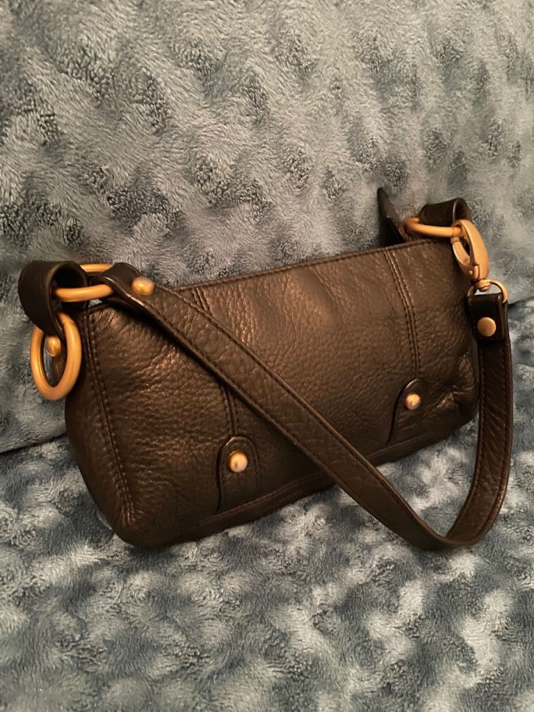Small black leather designer Suzy Smith handbag in v good condition. Ideal for evening wear for mobile/accessories. £10.