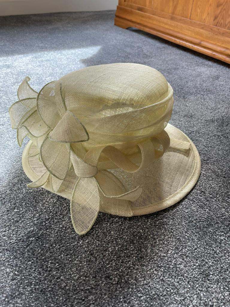 Used once, ladies wedding hat, colour light lime. Must collect & cash only please.