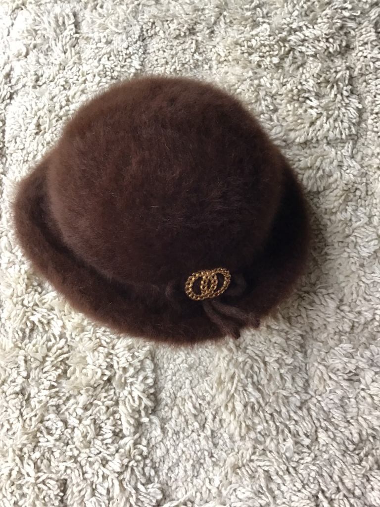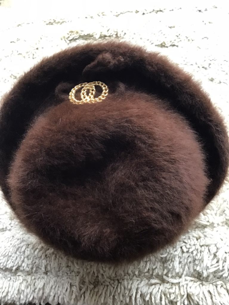 Ladies brown 45% angora wool Kangol beret with brooch, in very good condition.