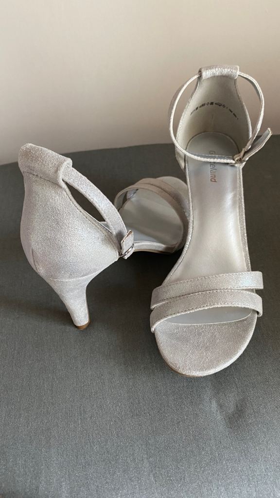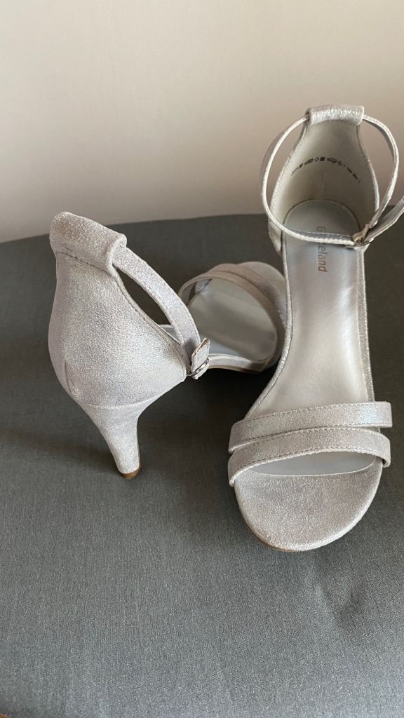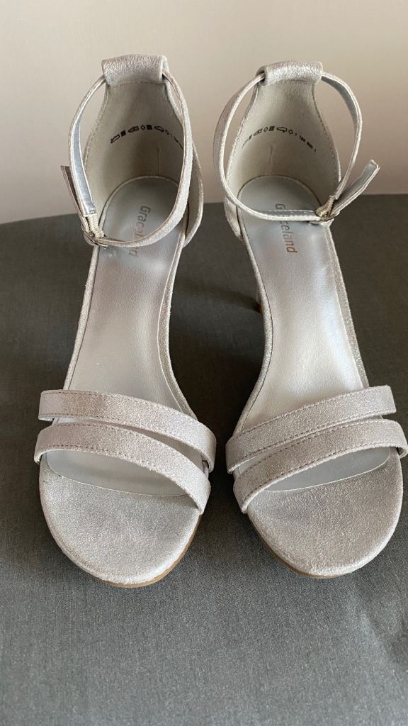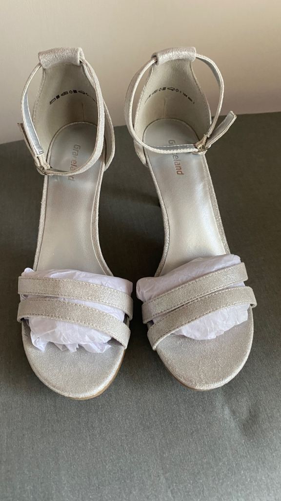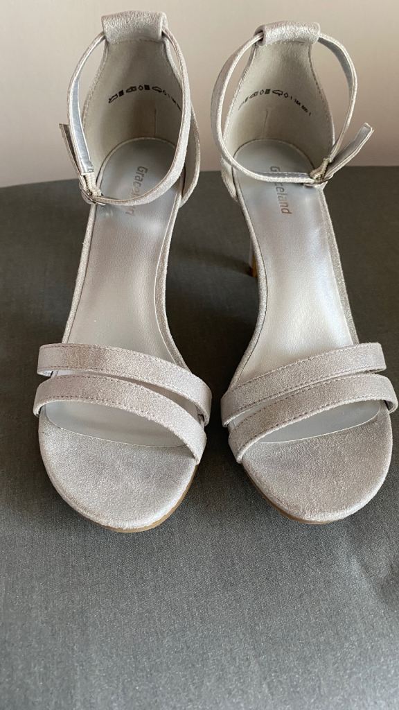 Brand new size 4 dechiman grey heels with a 3 inch heel comfortable, non slip . Perfect for any wedding or just a night out . It’s a buckle fastening strap round your ankles to give u extra support Comes from a smoke and pet free home