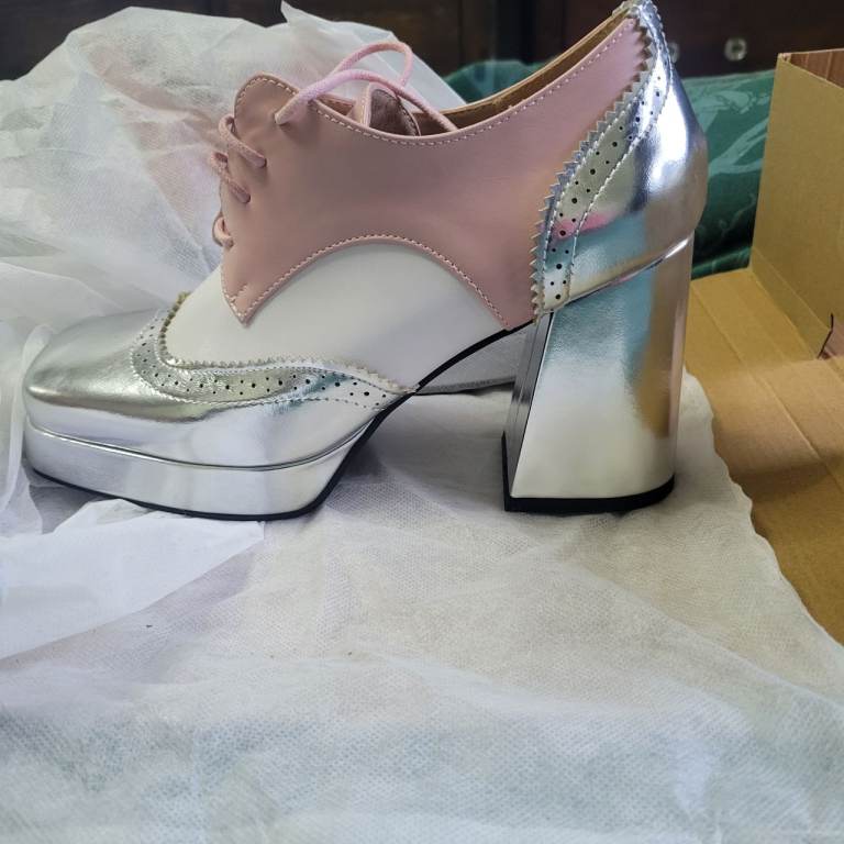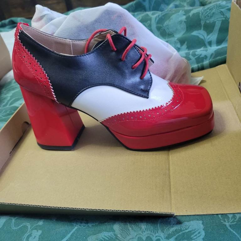 Brand new 70s platforms shoes two pairs ,size 6/40 25.00 each pink/silver ..red/blk .COLLECTON ONLY CASH ONLY.