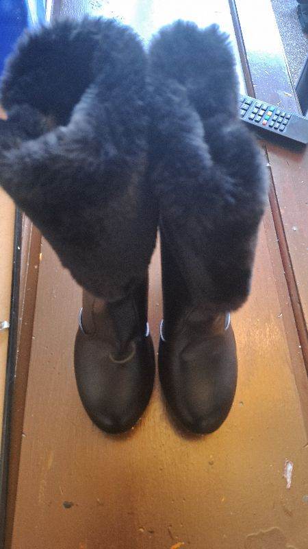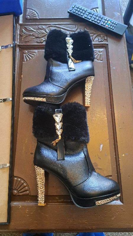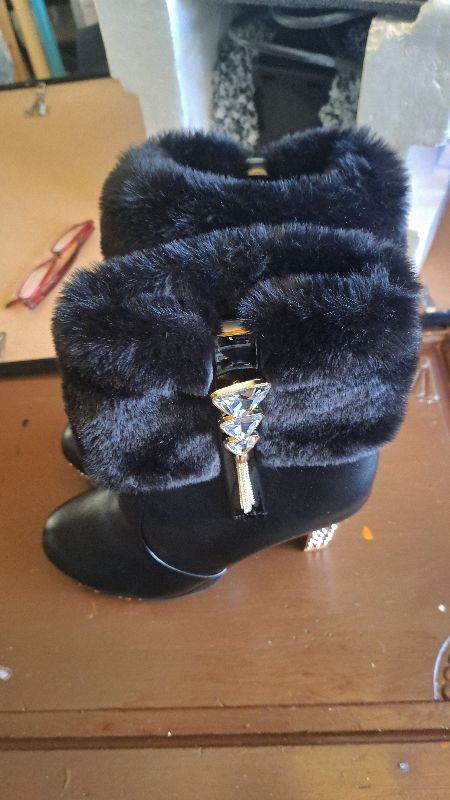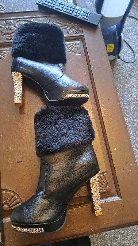 Black ankle boots. Size 6 .Black fur round the top gold bling at the sides. as new. Never been worn. Order the boots but I left it to late to send back