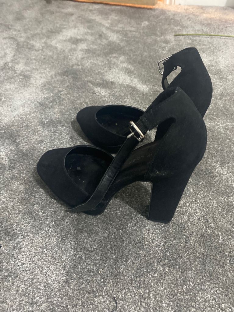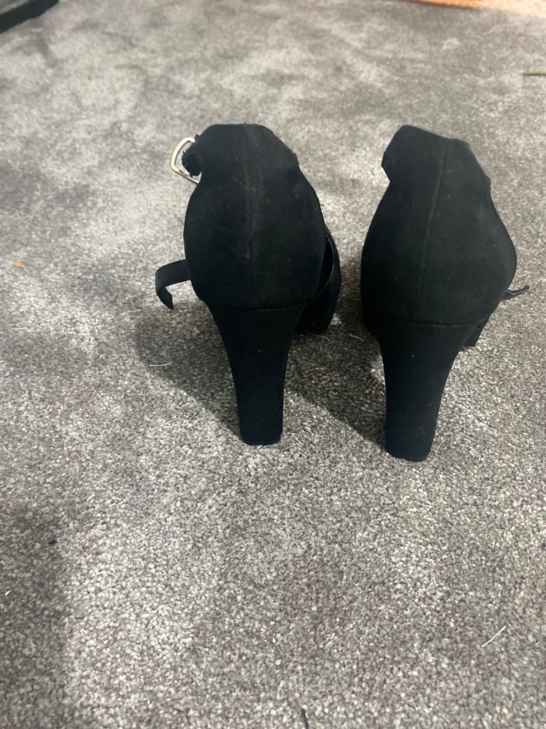 Elegant suede black shoes with 2.5/3" block heel. Hardly worn as these were a bit big for me othwrise would have been comfortable. Size 4 / 37.