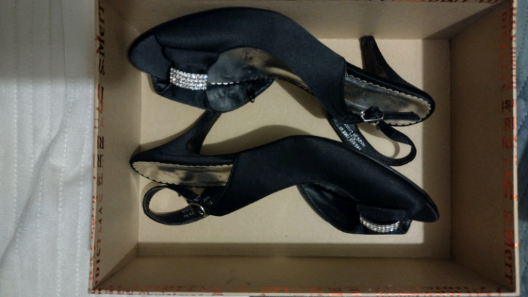 Black satin diamonte prom/wedding sandals