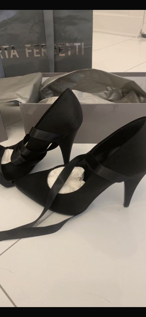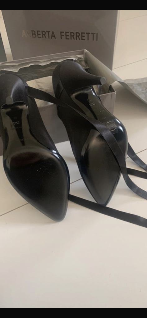 Really Beautiful Alberta Ferretti Satin Ribbon Stilettos very expensive never worn, Size 6 and half but fit size 6 perfectly