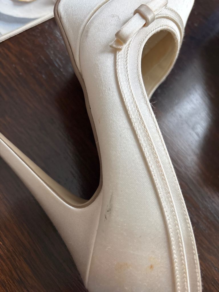 A couple of slight (barely visible) stains from storage in cupboard. Size 35 (2.5 UK)