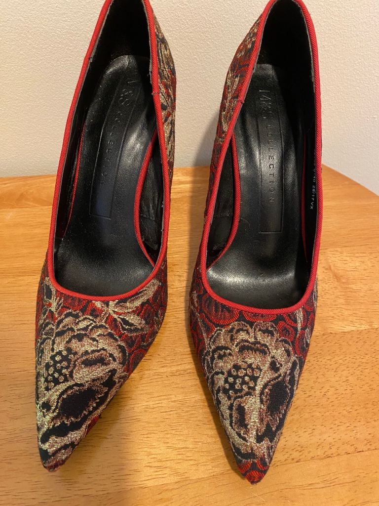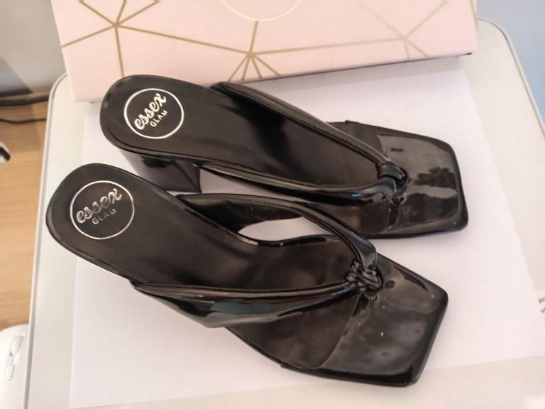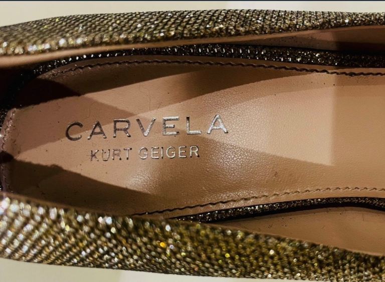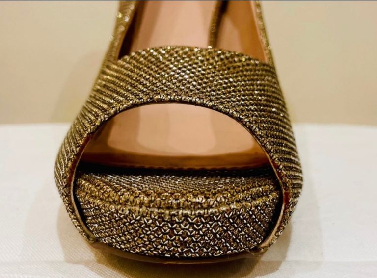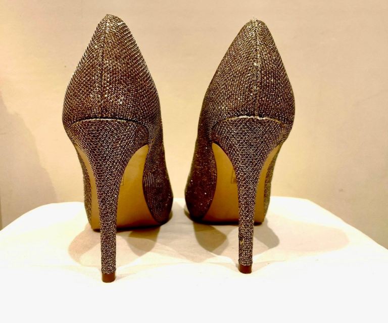 5 inch heel inbuilt platform soft gold textured shoes. Worn twice with tiny damage on inside heel.