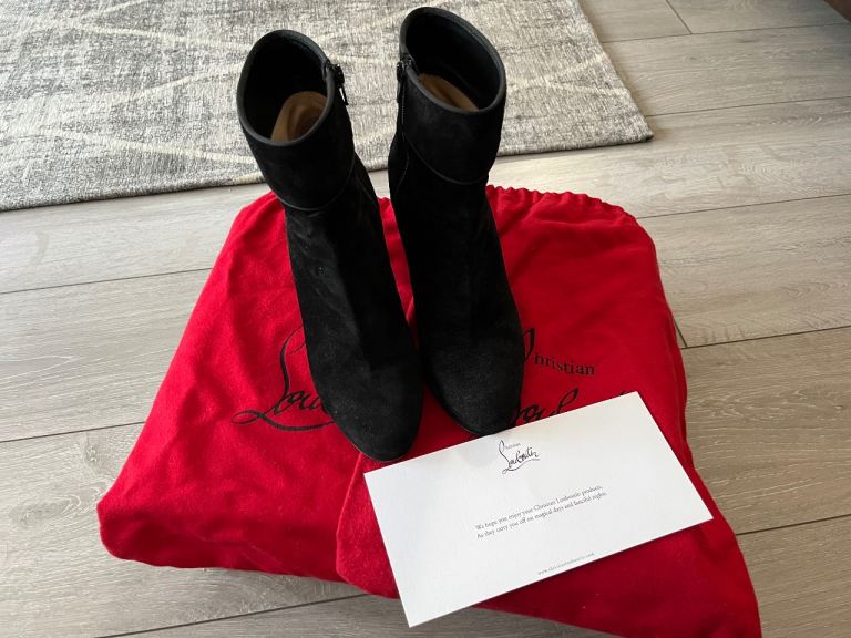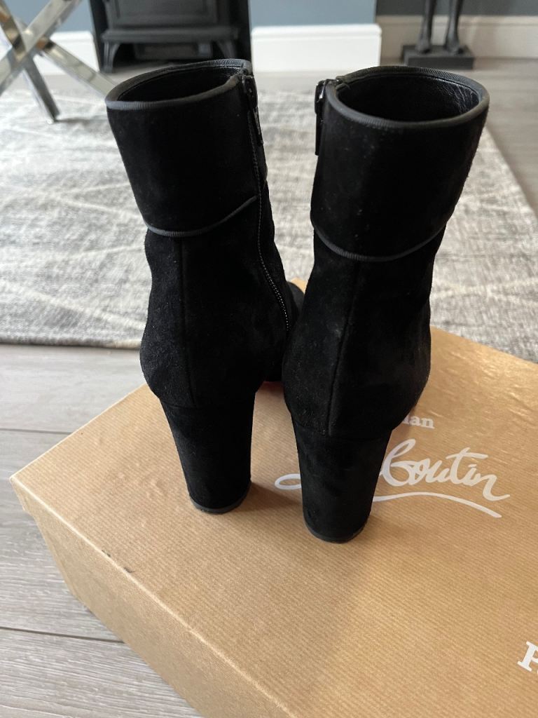 Christian Louboutin suede zip up boots. They come with the original box and two dust bags (one for each boot). The heel is 85mm and a size 5.