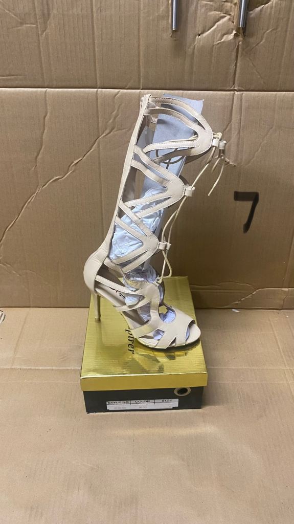 Christian. Louboutin. NEW Lady Peep Hole 140 Nude Patent Size 39 (UK6)