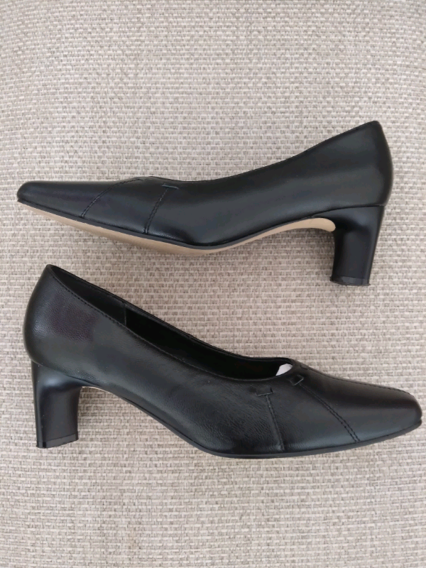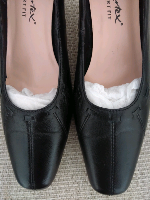 Black court shoe brand new Berkertex comfort fit size 4 front detail