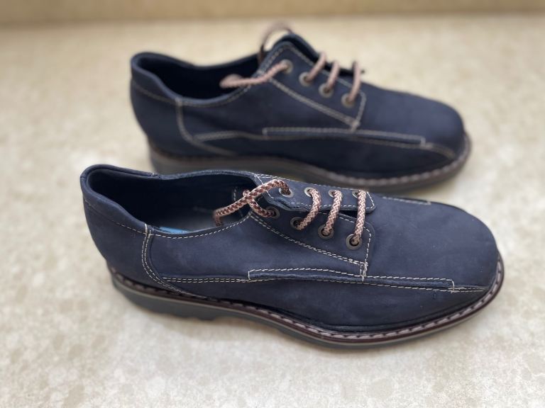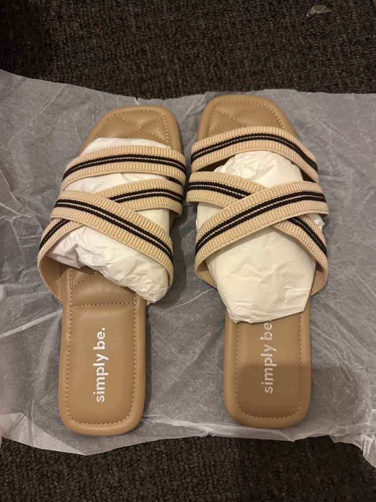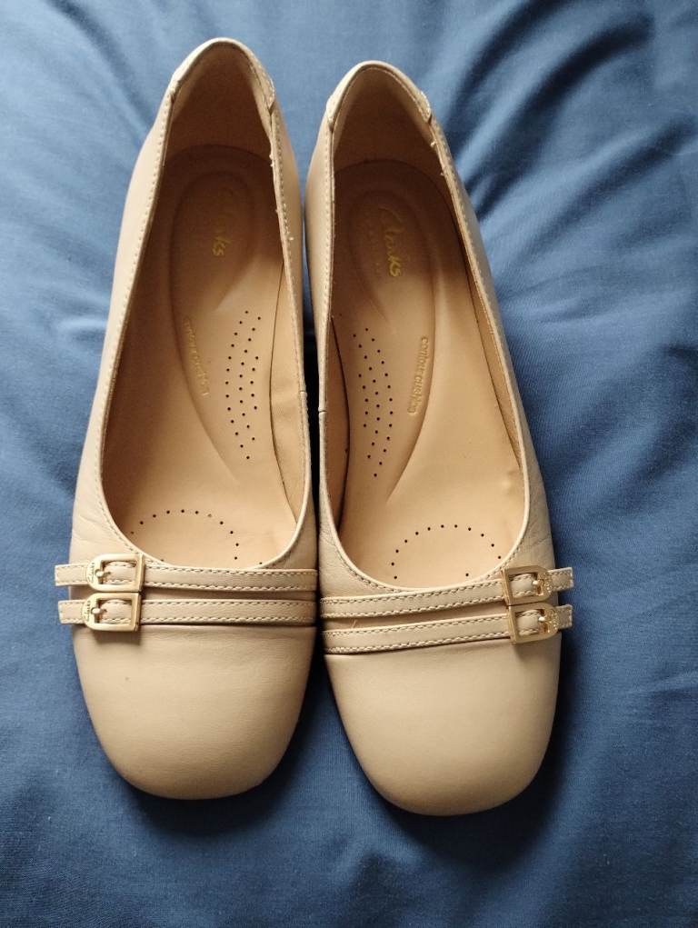 Classic pair of shoes with a designer edge - two tone pink and beige sling backs in the softest leather - not pointed but elongated-shaped in toe area. Elasticated back straps Approximately 2 inch wood effect heels. Soft cushioned inner soles - gridded rubber outer soles. Size 7 UK. Still in box with wrapping.