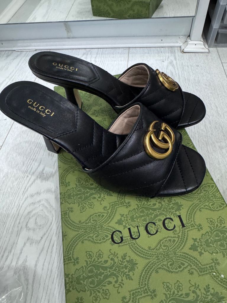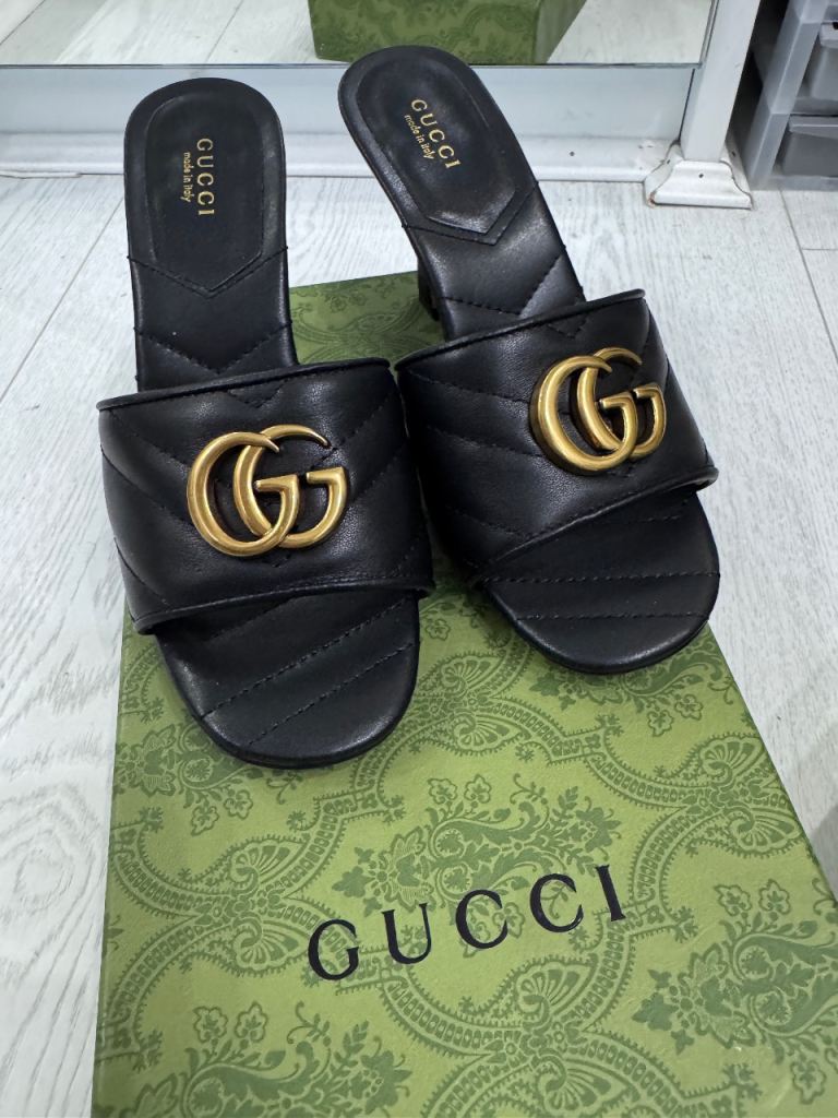Gucci Marmont Sandal Heels size 3 36 black leather