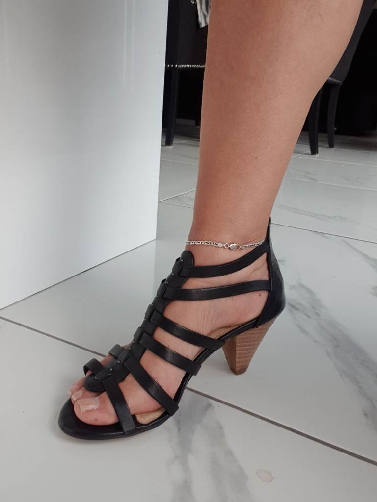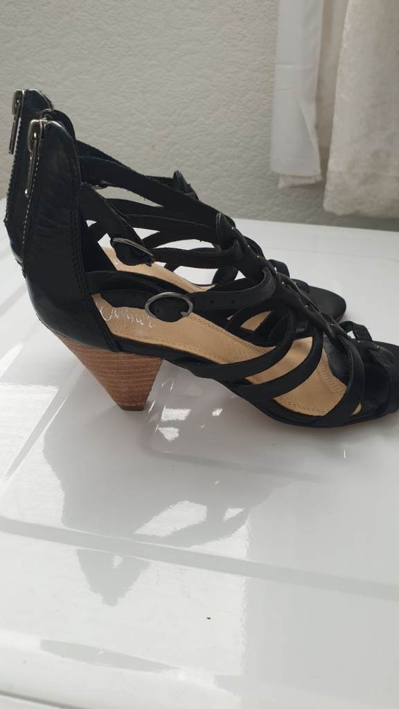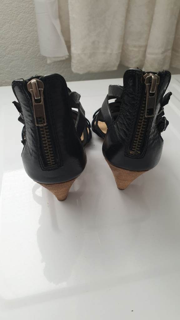 Leather Sandals comfortable low heel. Zip on the back. Size 3 In great condition only wore once to a wedding.