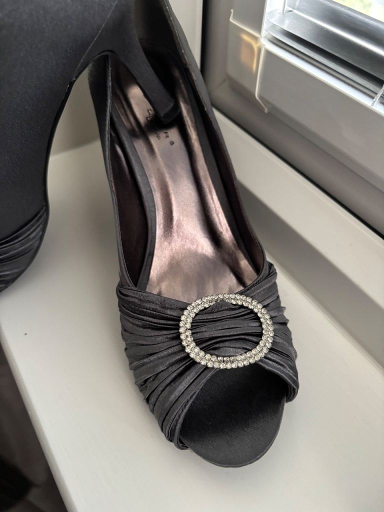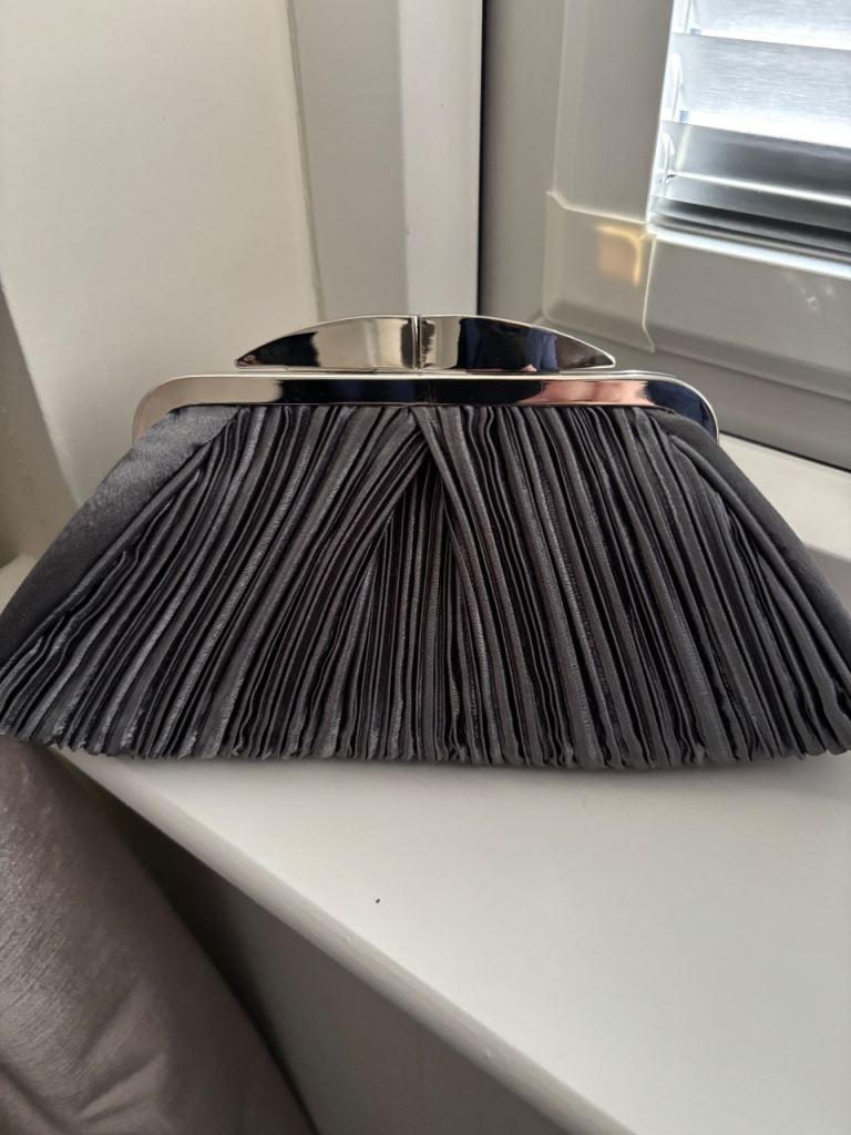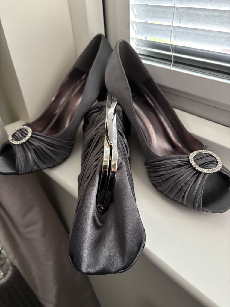 Lovely pair of grey heels with a matching clutch bag, perfect for special occasions.