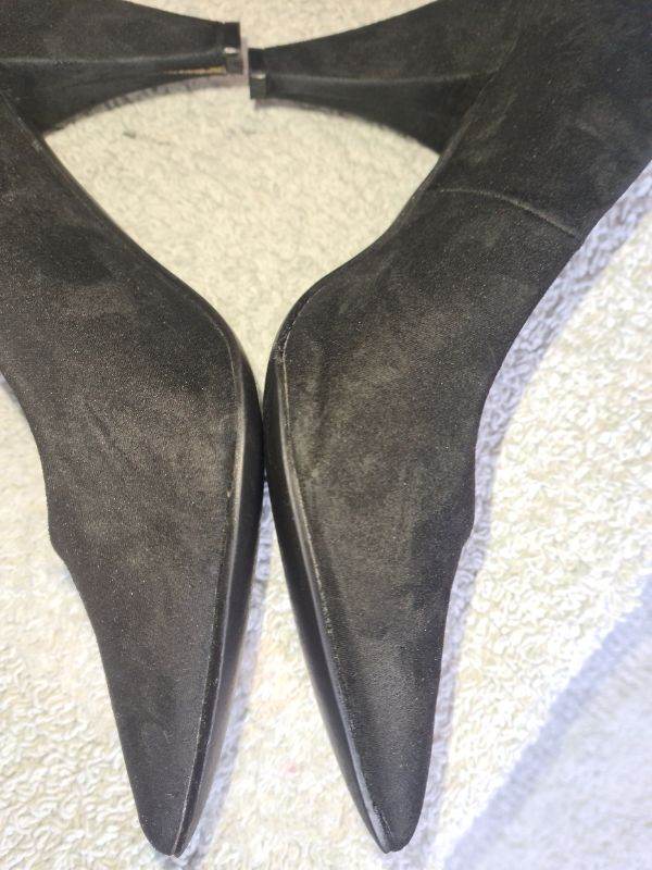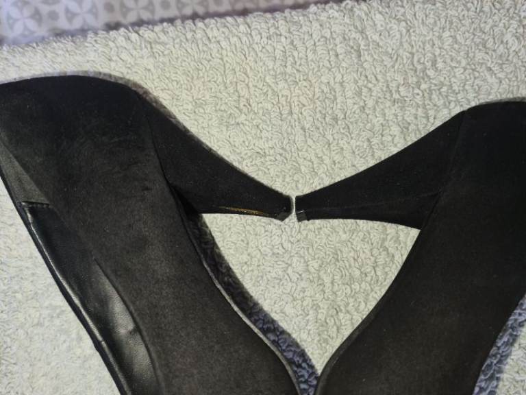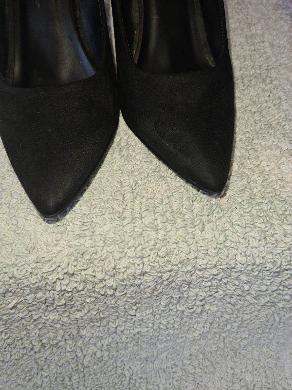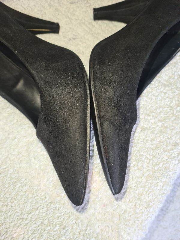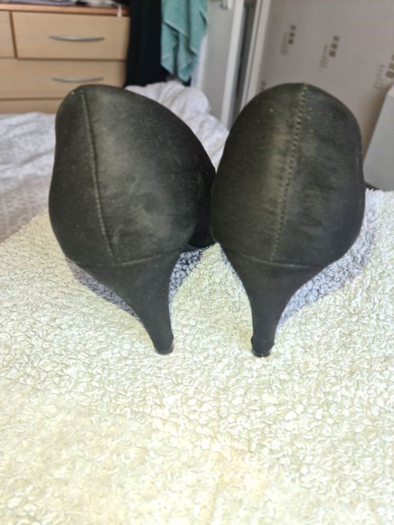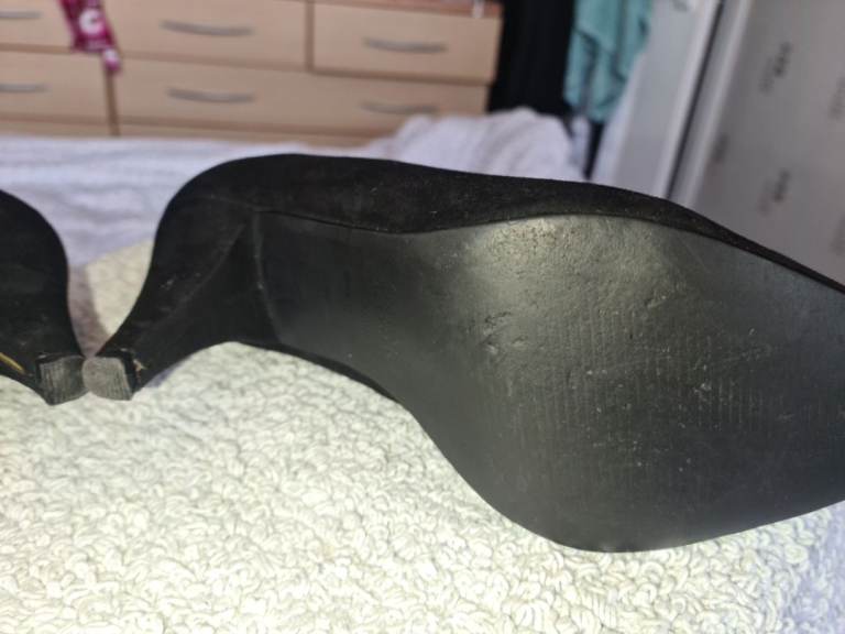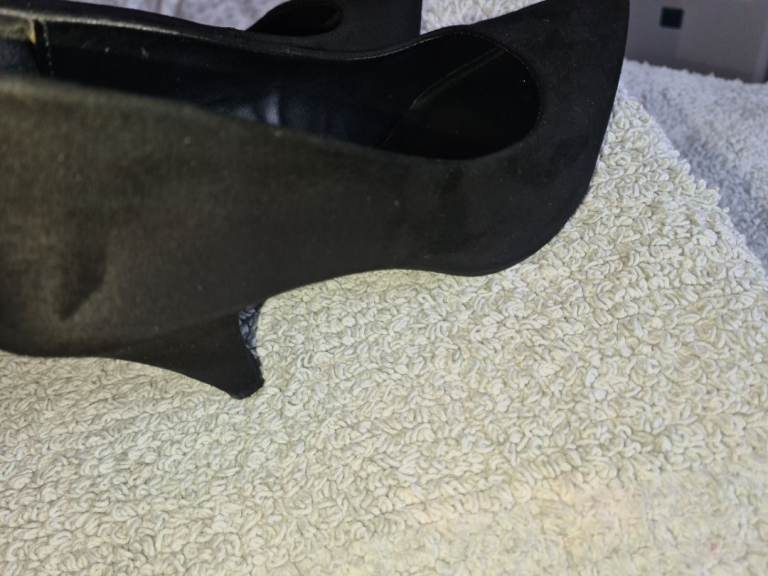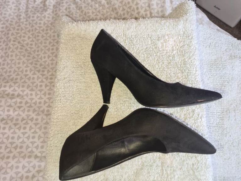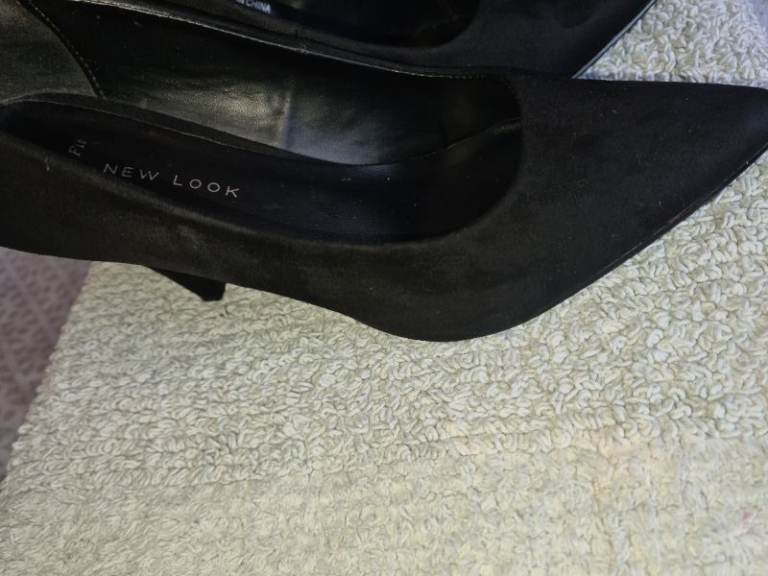 New Look Uk6 black suede mid heels shoes in great condition 1st 2c Will Buy wide fit. I have cleaned and sterilised them meticulously. See photos for condition size flaws materials etc. I can offer free local delivery within five miles of my postcode which is LS104NF. I am also in Wakefield on Monday, Wednesday and Friday lunchtimes so free delivery possible around Wakefield but Strictly with mutually agreed terms prior to end of auction/ sale. i can offer postage at extra cost which is via Royal Mail.