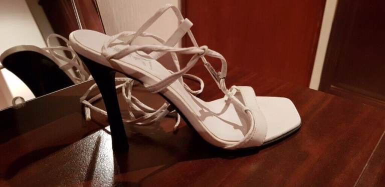 NEW - WHITE STILLETOS WITH 11CM HEEL. UK SIZE 5.