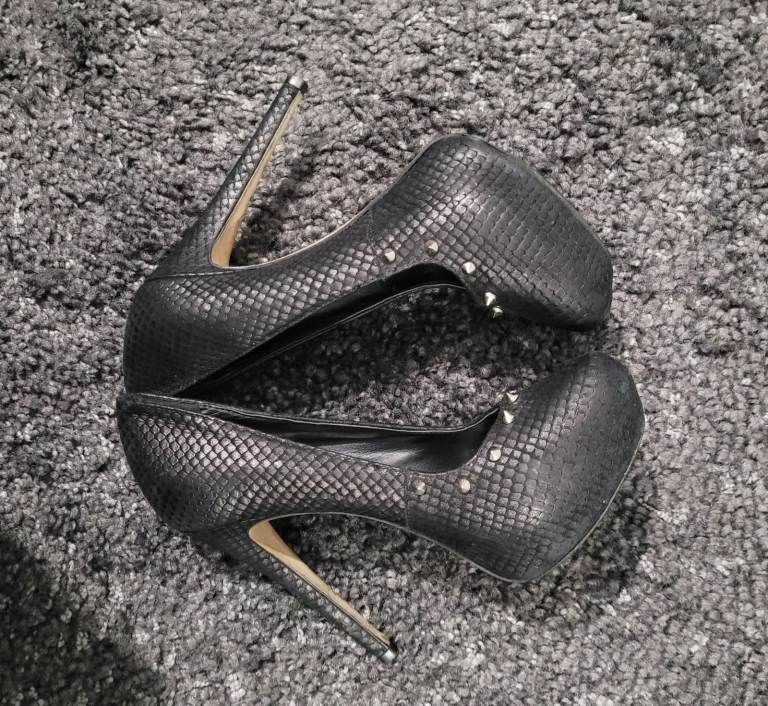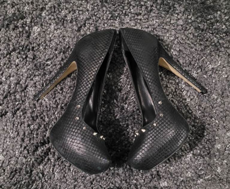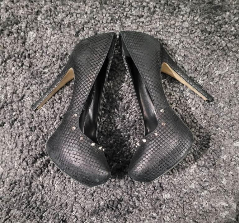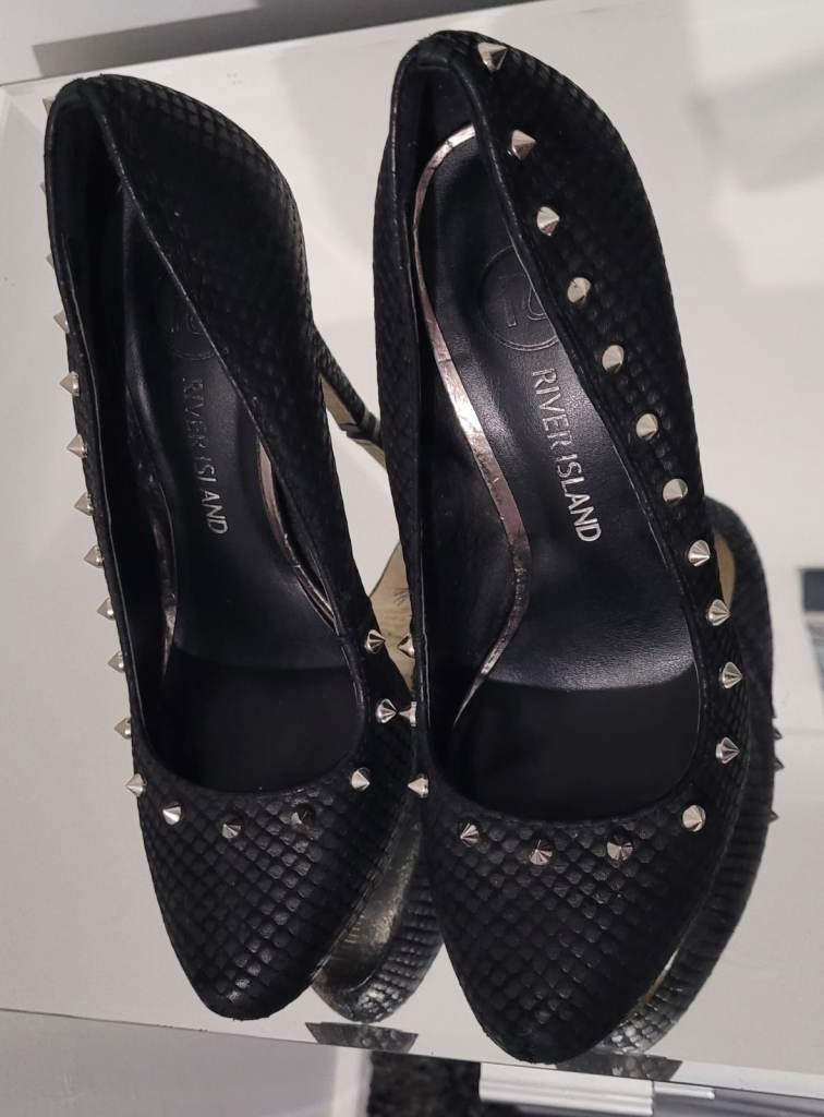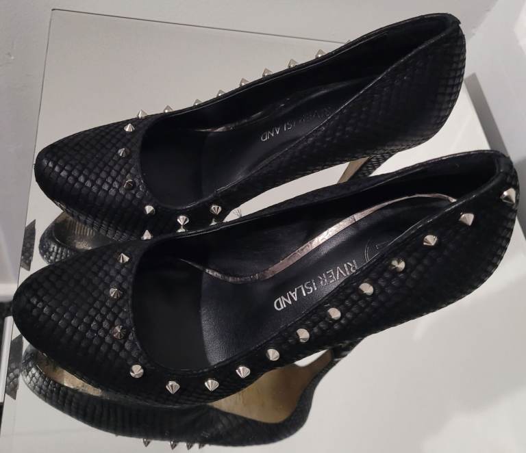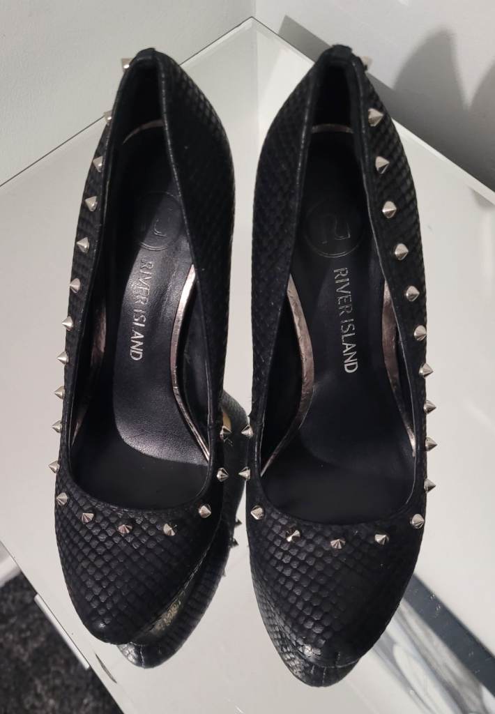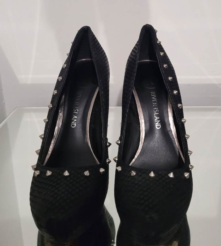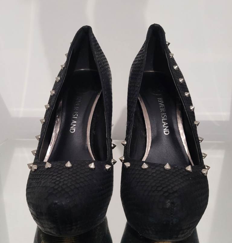 River island black silver spike Studded Stiletto court shoes size 4 vintage Y2K