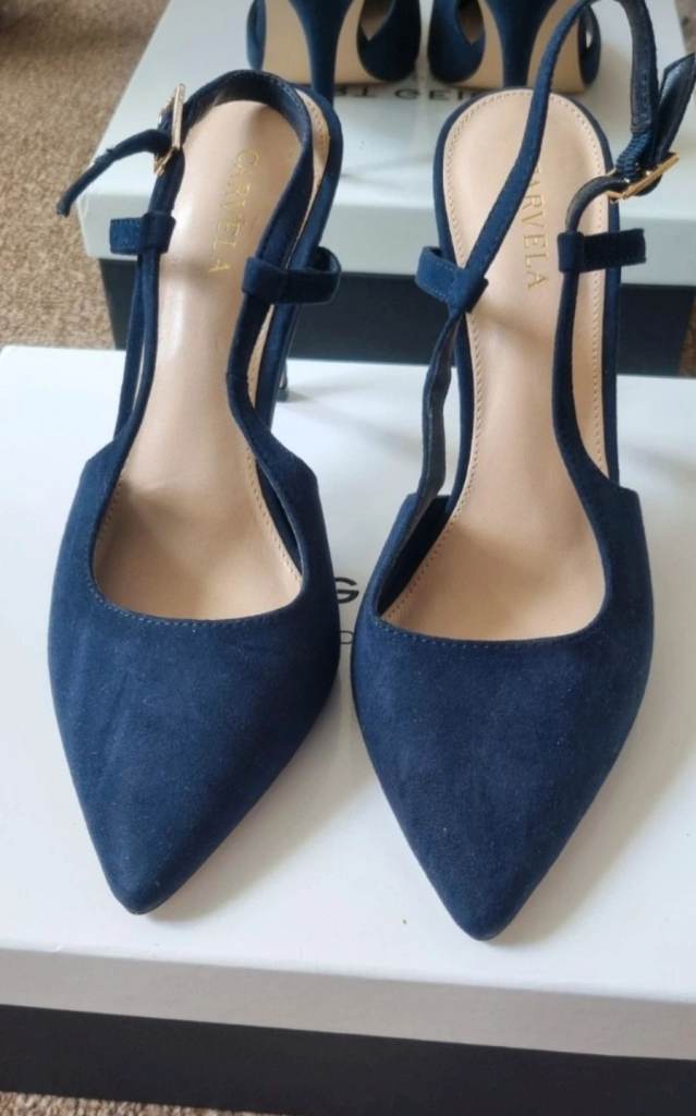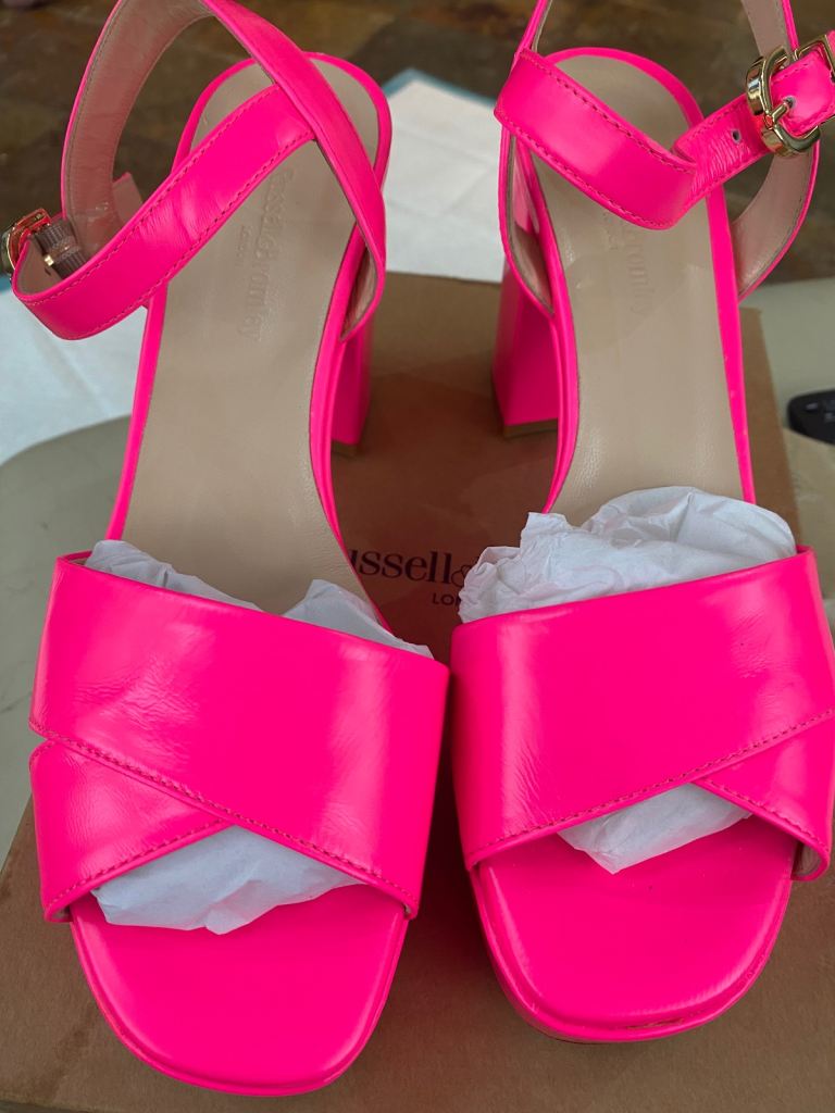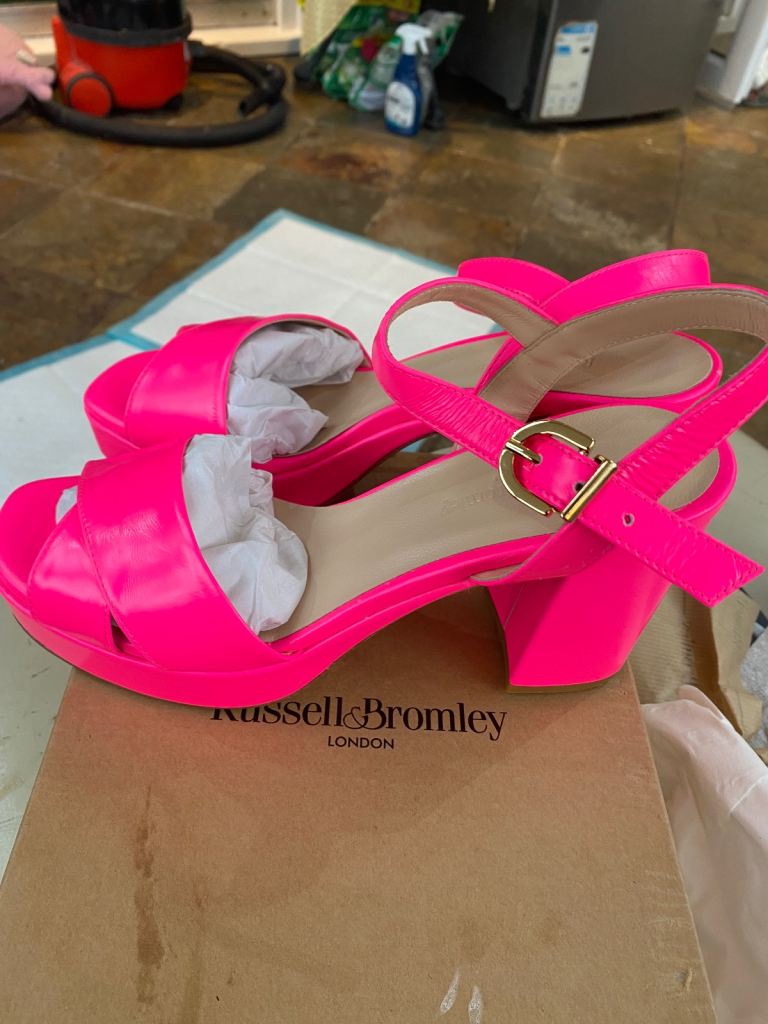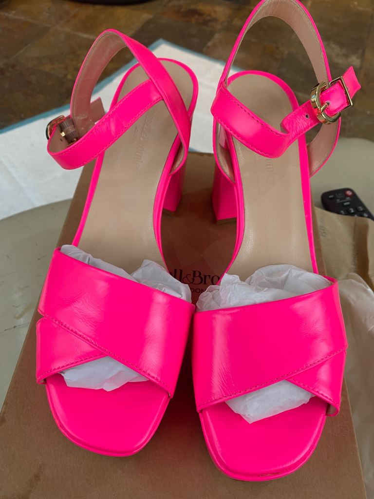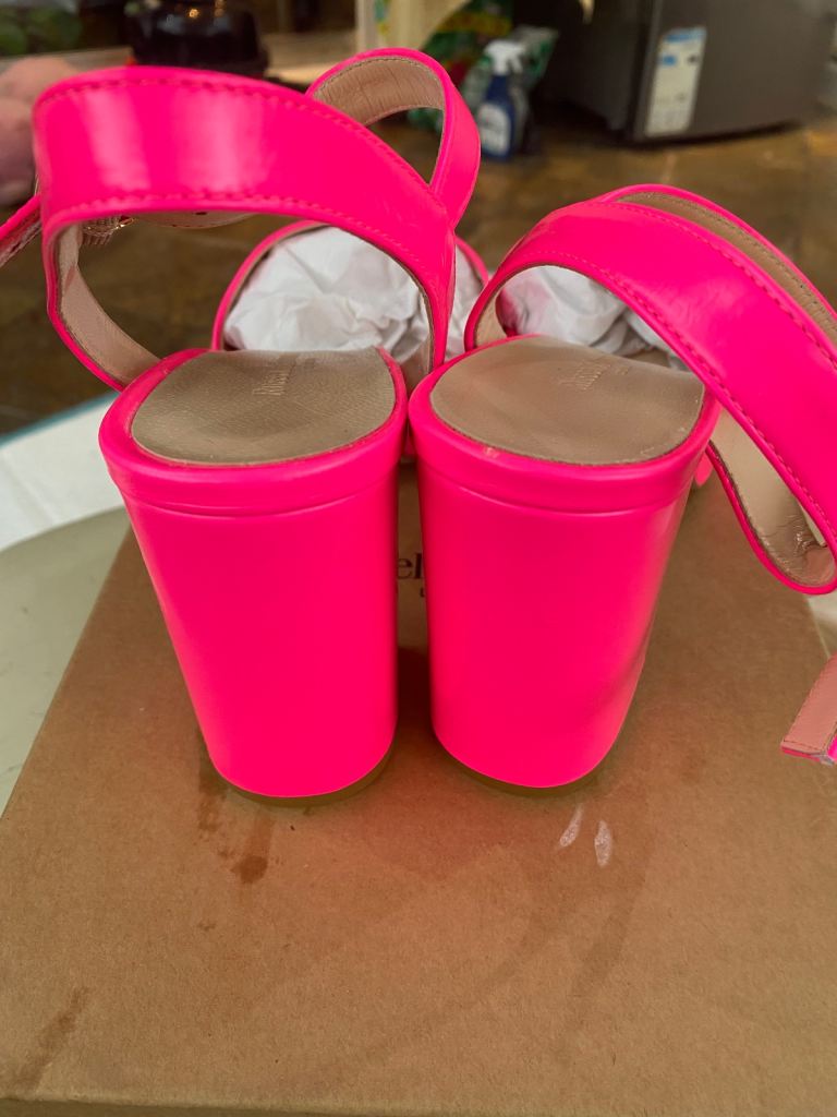 Ladies new in box genuine pink leather 1 inch wedge 3.5 inch heel