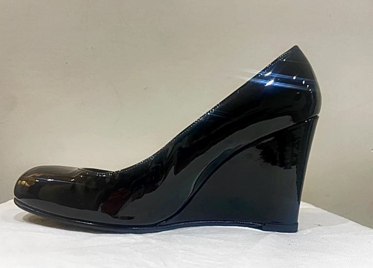 Lovely new shoes worn 2/3 times for short period. 3.5 inch height, size 5.5, slim fit.