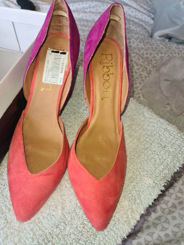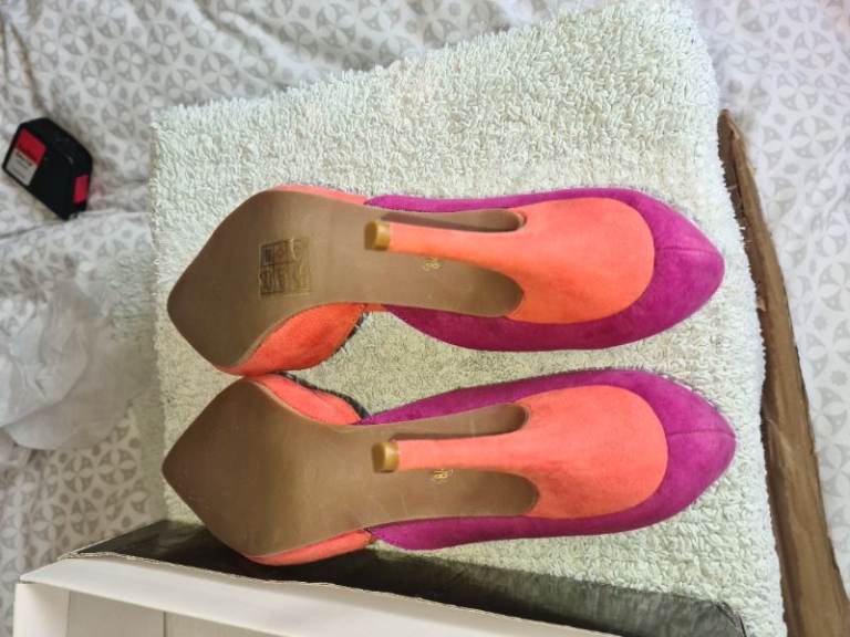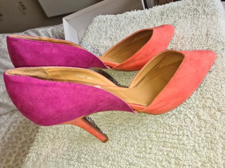 Stunning two colours suede high heels court shoes uk8 boxed worn once Indoors