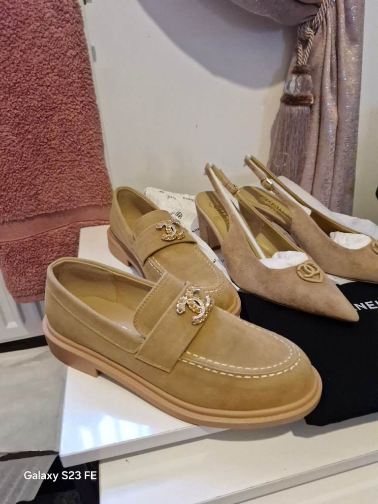 Both shoes suede size 5,brand New,Heel shoes comes with bag £35.00 ,Flat shoes comes with box, £45.00.