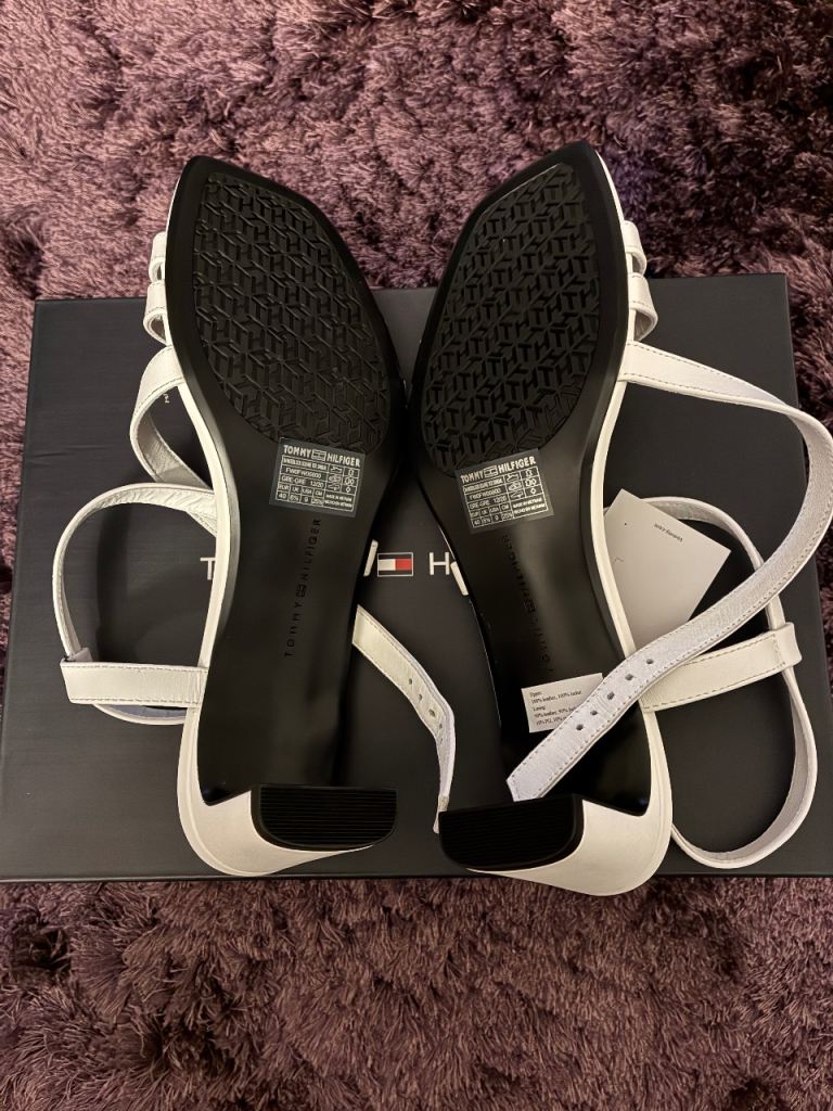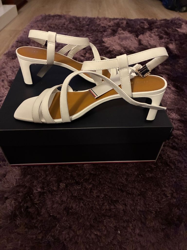 White strappy Tommy Hilfiger women’s sandals with small heel. Size 6.5. Perfect condition never worn and still with labels on.