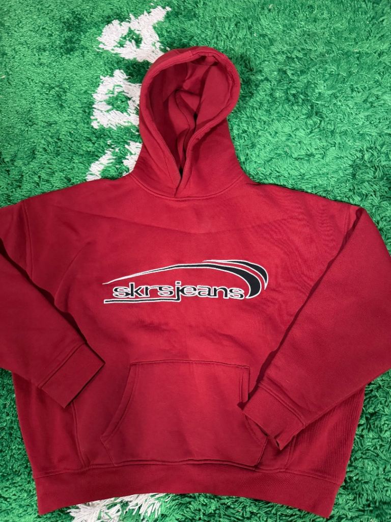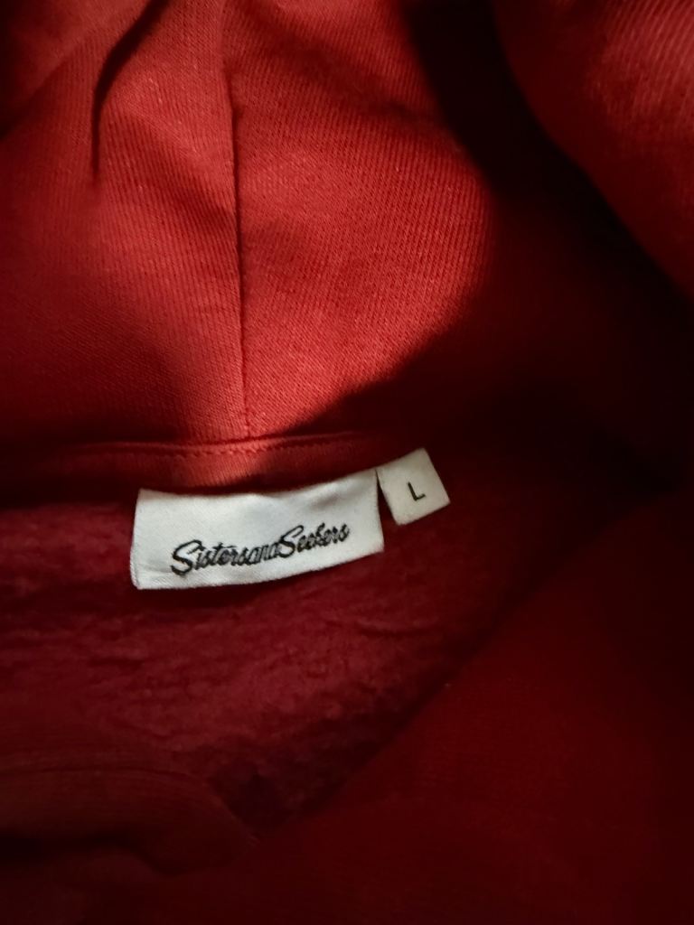 Red & black Sisters & seekers SKR Jeans staten hood print logo hoodie jumper womens size large