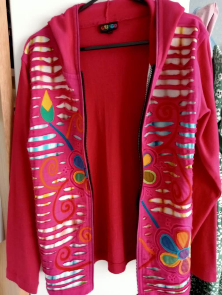 Gringo pink long sleeve hooded top. S/m. Front zip. Two side pockets. Cotton. Made in Nepal. Unworn new. £5