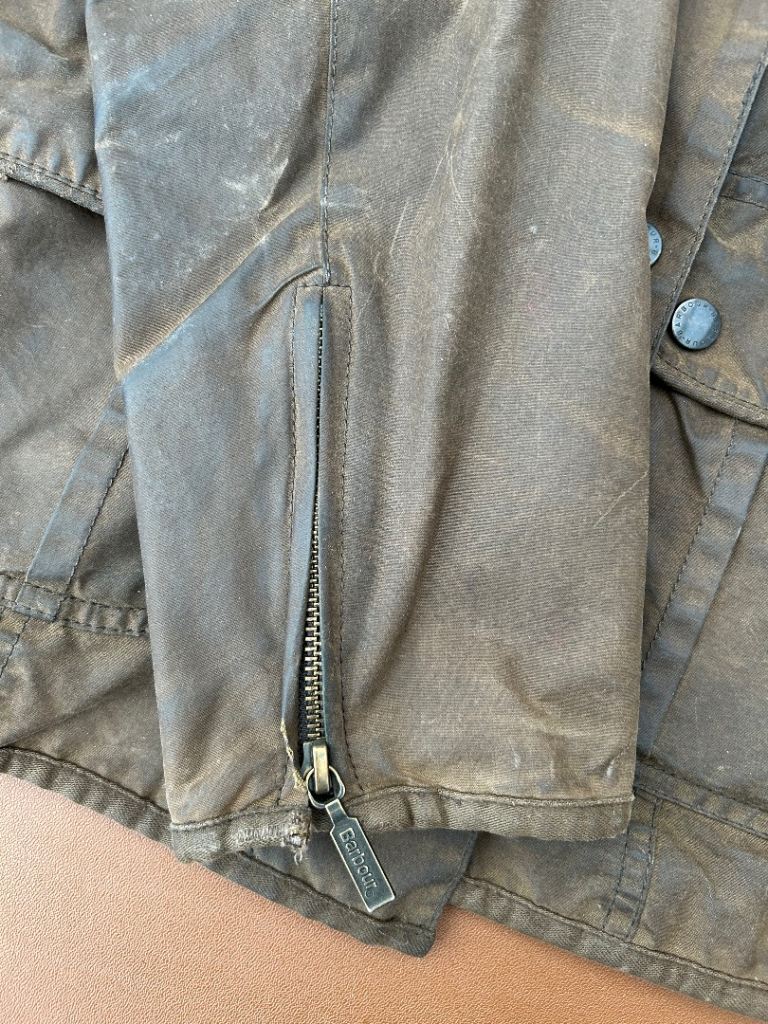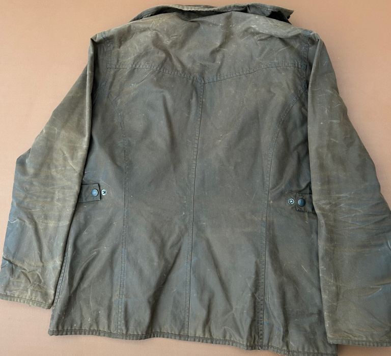 Good condition, mid length jacket. No obvious damage, clean. Would look fantastic with a rewax but looks great as is. I can’t fit in it now!