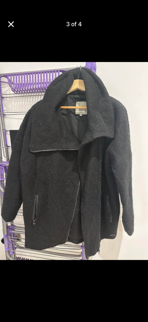 Bench Woman Black Wool-Blend Coat – Size M Asymmetrical Zip