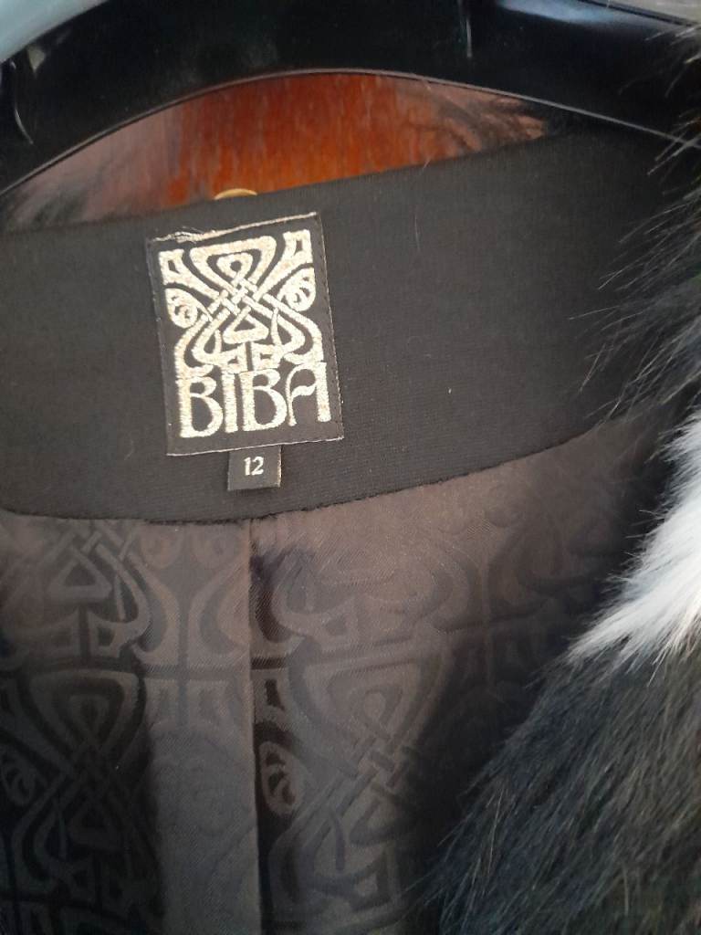 Black & White fun fur jacket Designer Biba long sleeve with zip cuffs slight damage on one sleeve size 12 Biba logo in lining no marks