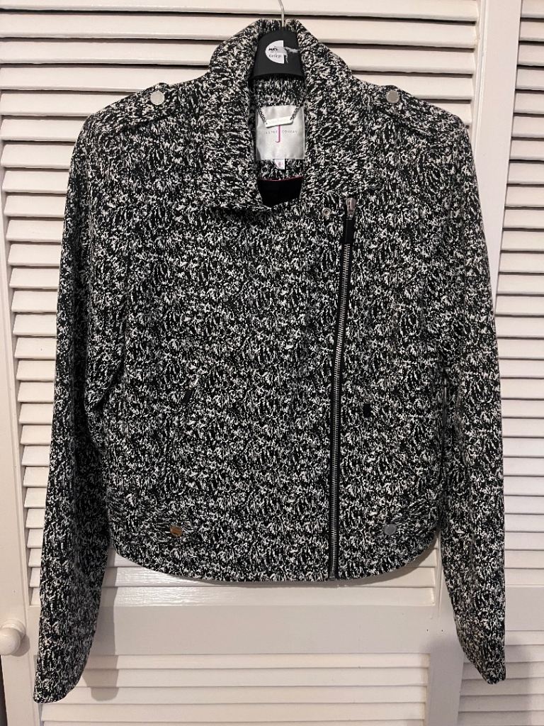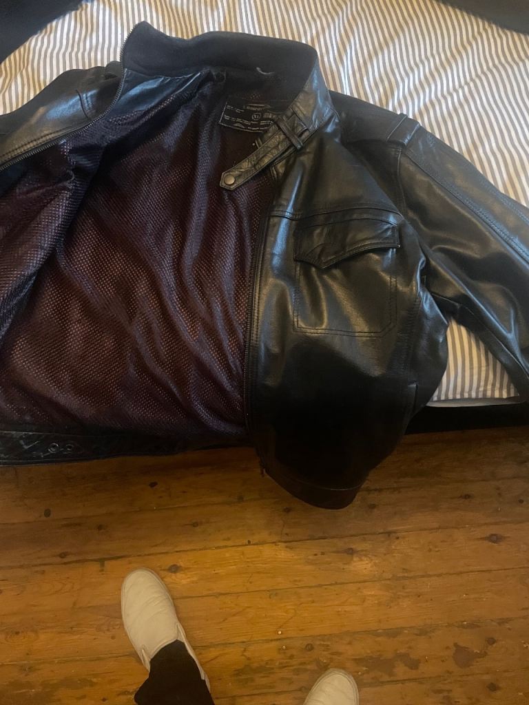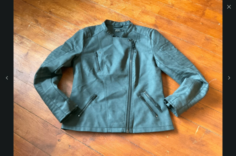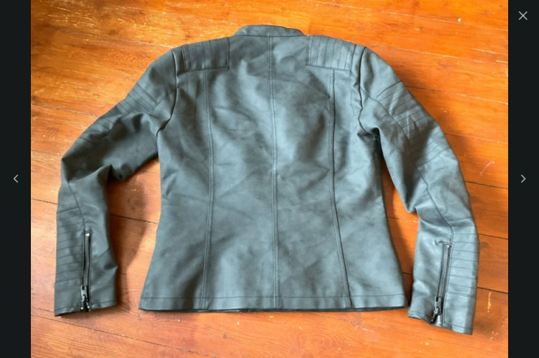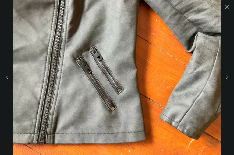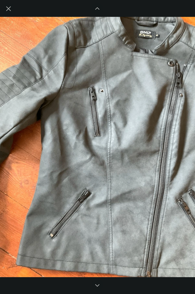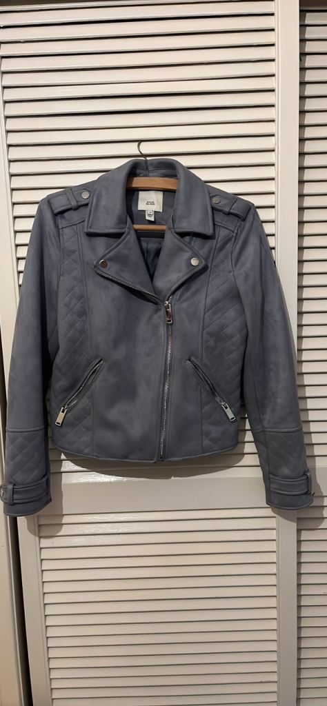 Stylish dark grey faux leather biker jacket in excellent condition.