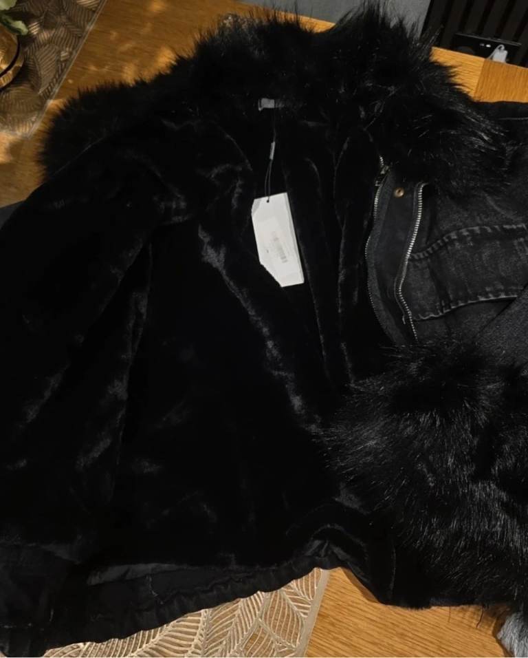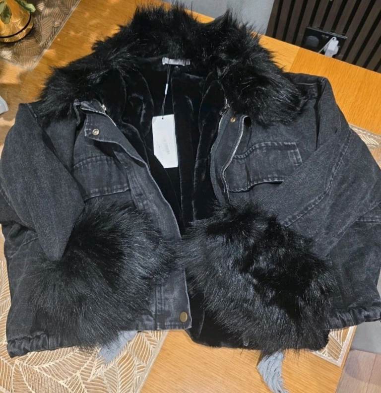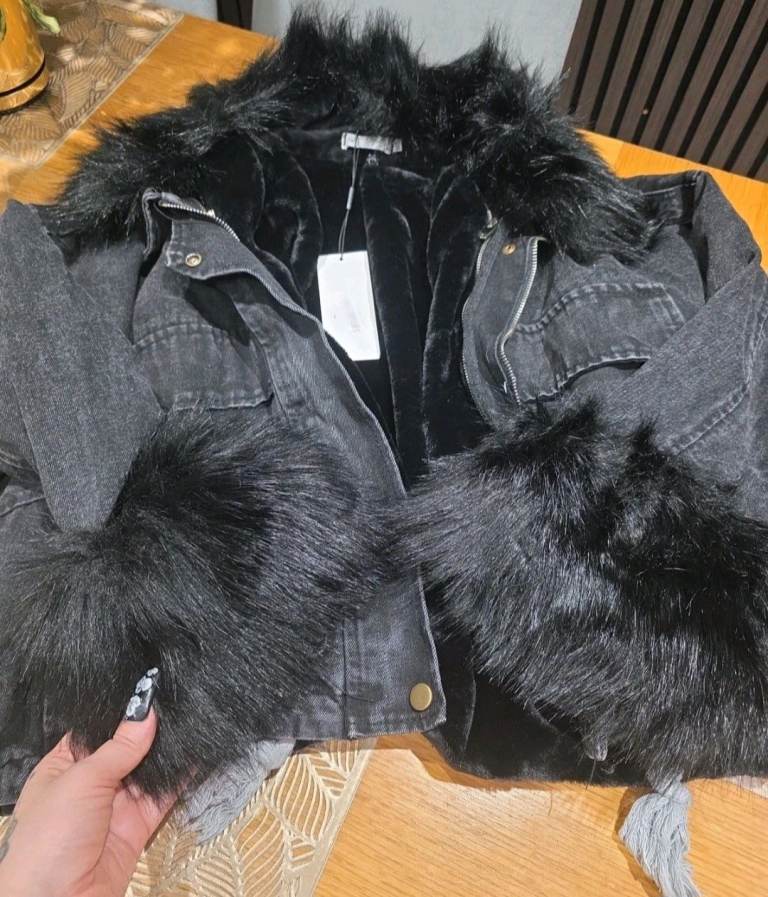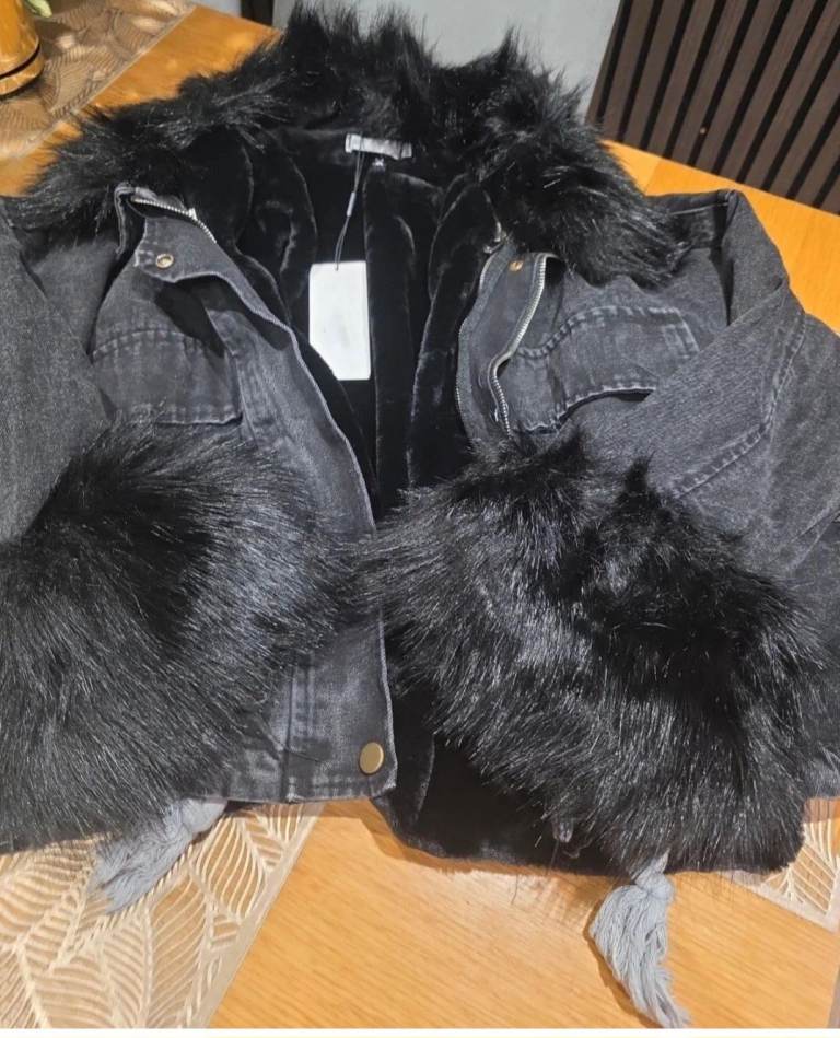 Denim Faux Fur Jacket/coat ,size UK L,new