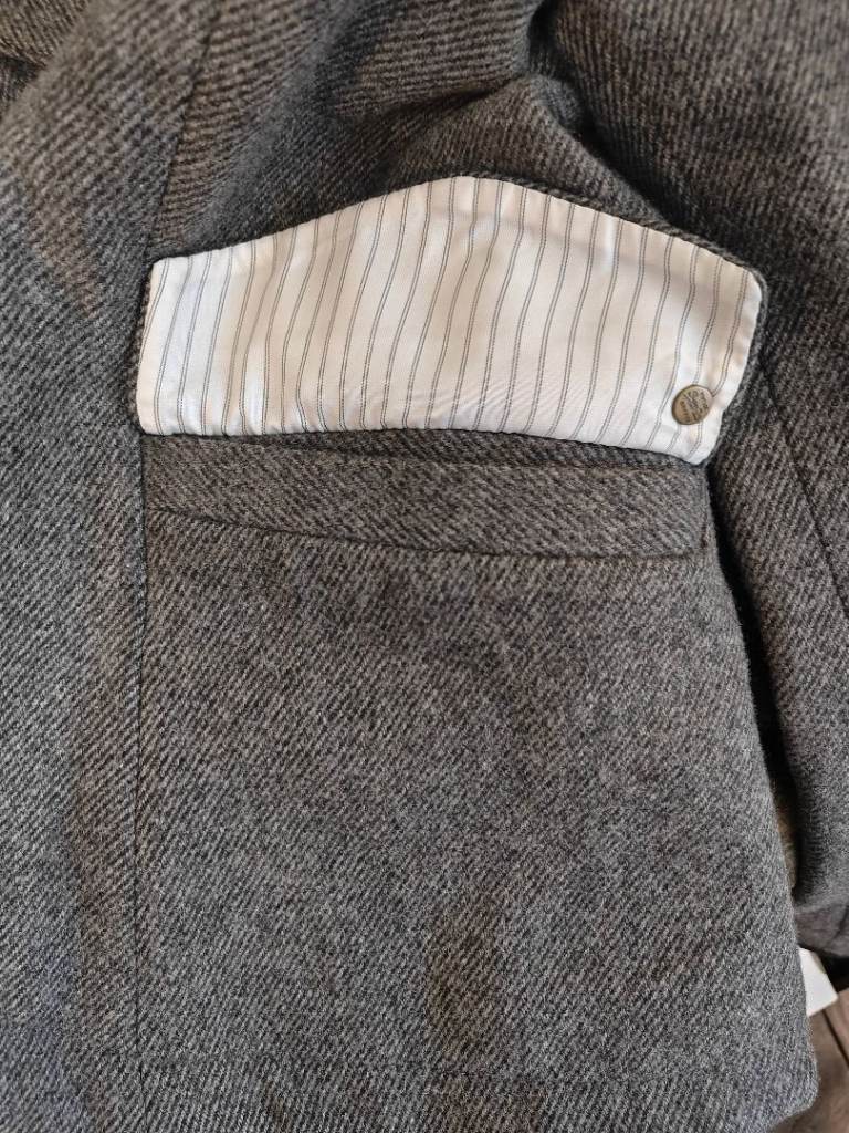 Front pockets flaps can be left out or tucked in, metal logo on sleeve, beautiful detailing on internal and external jacket.