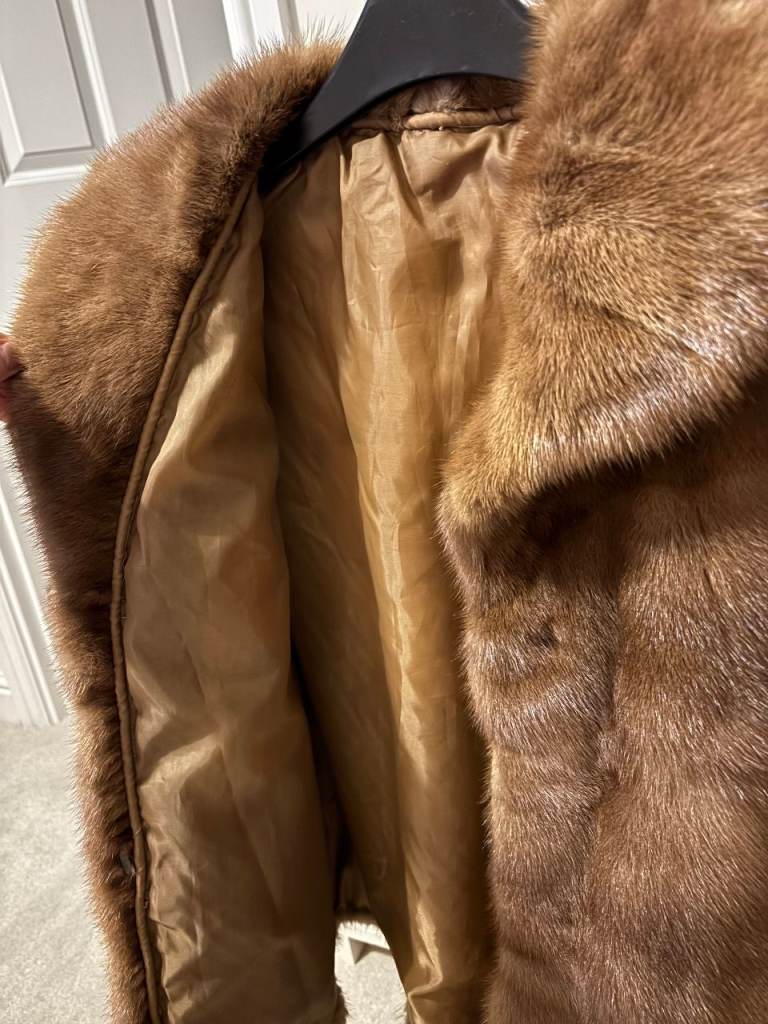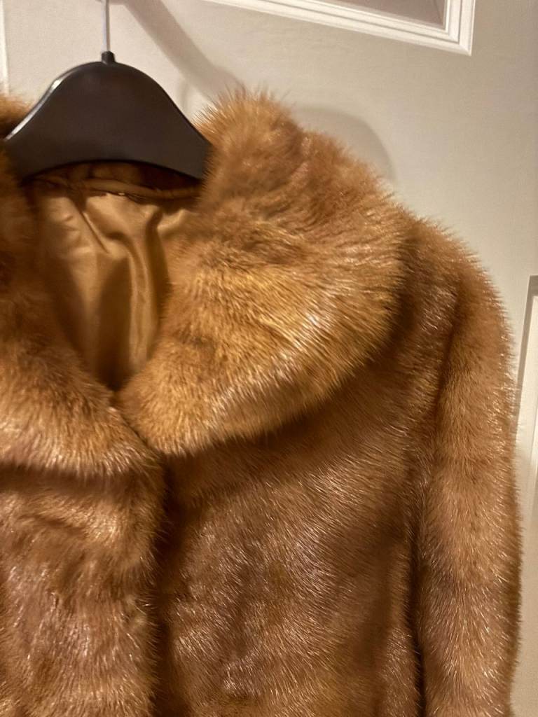 This vintage Mink Fur Coat is a luxurious and stylish addition to any woman's wardrobe. Made with high-quality fur, this coat exudes a timeless elegance. A beautiful brown colour for all year round.
