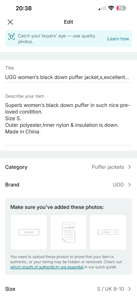 "Share photos and ask lots of questions about the items you are buying and selling"