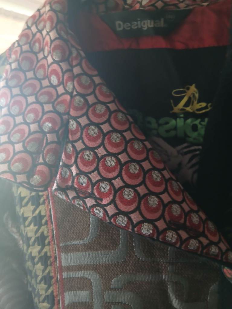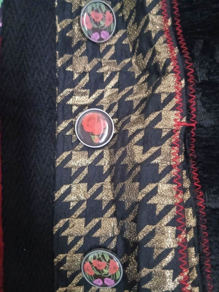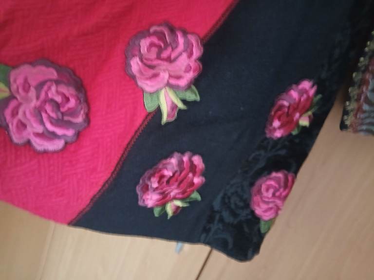 Stylish and unique Not on the high street. Buttons up at front. Rose buttons and extra button on inner garment lining attached to label inside. Simply stunning details. Lots of compliments when walking in this and wear casual and just allow the coat to do the talking. Worn only handful of times and sadly does not fit no longer. Vintage.
