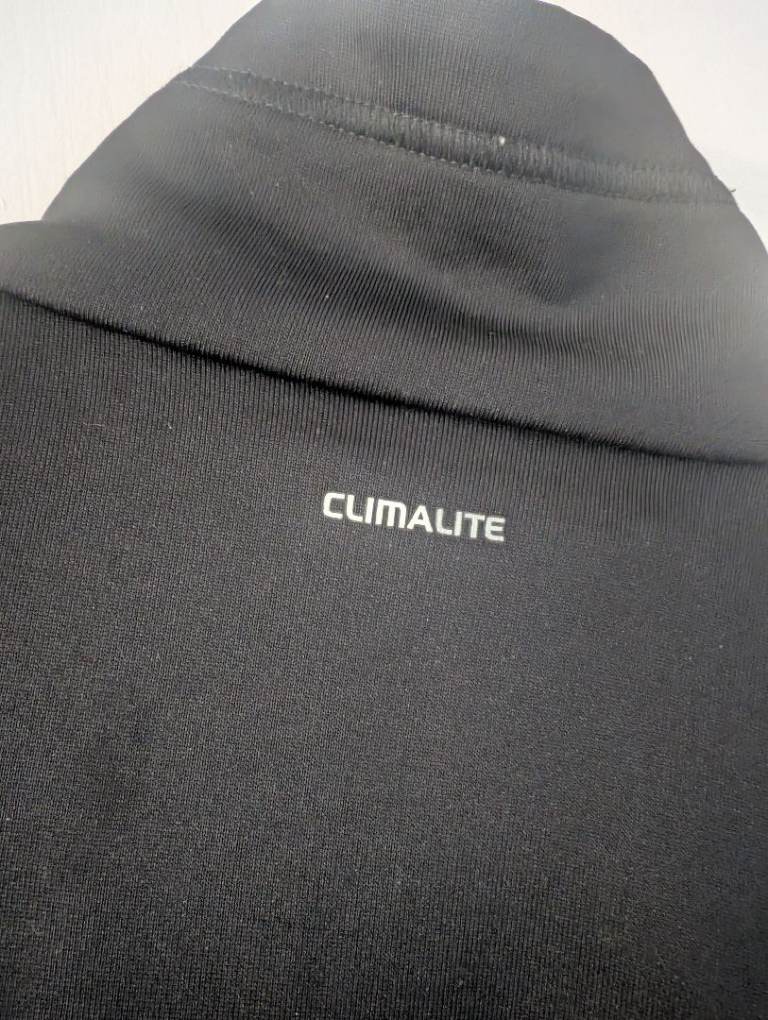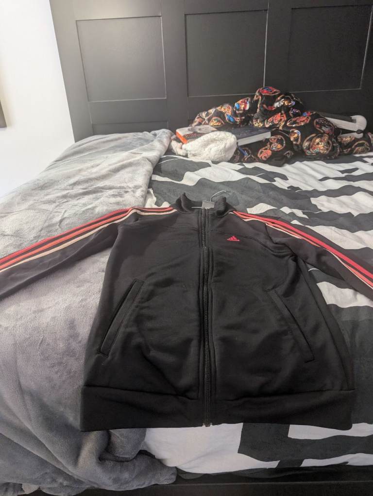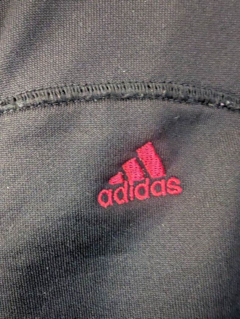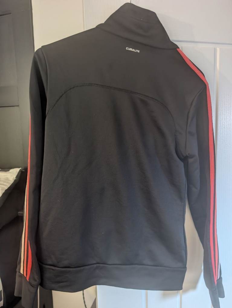 A woman / kids small Adidas climalite track top black with multi coloured stripes in good condition
