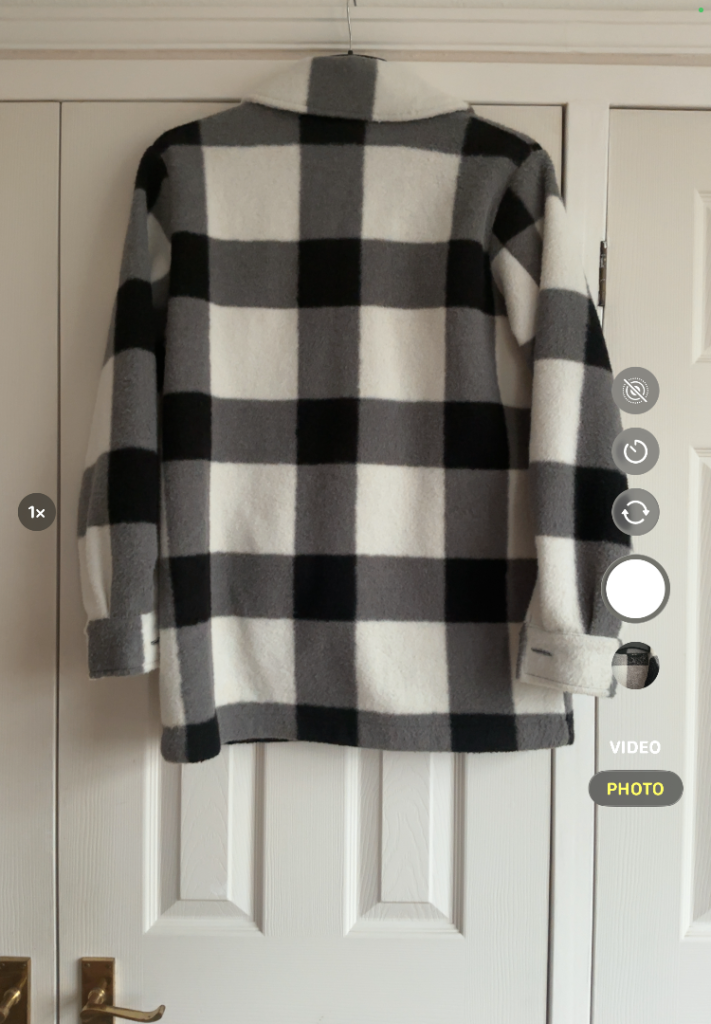 Women’s Shacket. Black & white checked, with 2 front patch pockets and 2 side pockets. Size Small. Worn a few times. Nice and warm for dry weather.